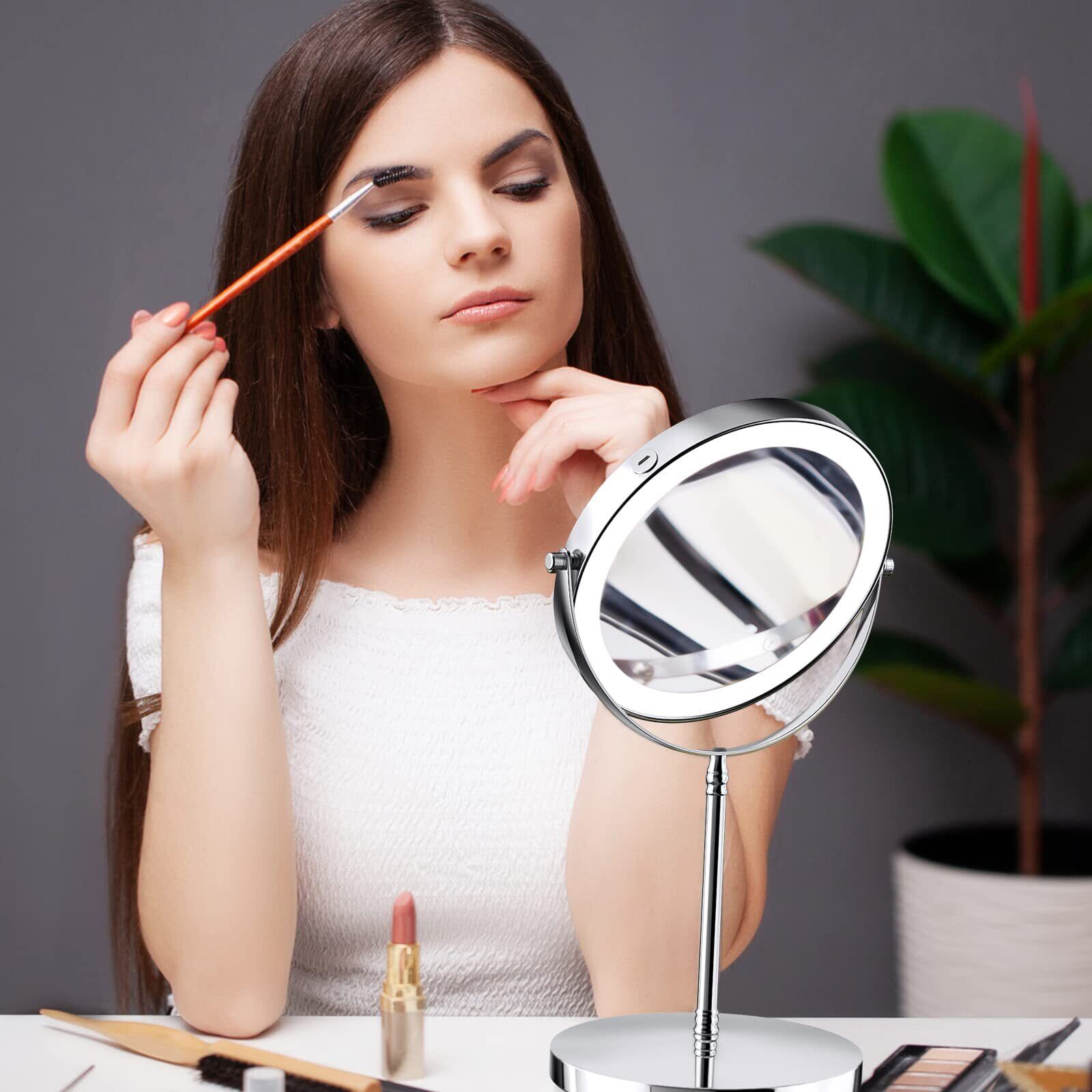 【ライト付き&USB充電式 】ライト付きミラーのLED照明が顔の立体感をクリアに映し出し、ハイライトやシェーディングが簡単に。卓上ミラーとして使えば、自宅がメイクルームに早変わり! USB充電式(2000mAh大容量)で最大5時間連続使用可能。