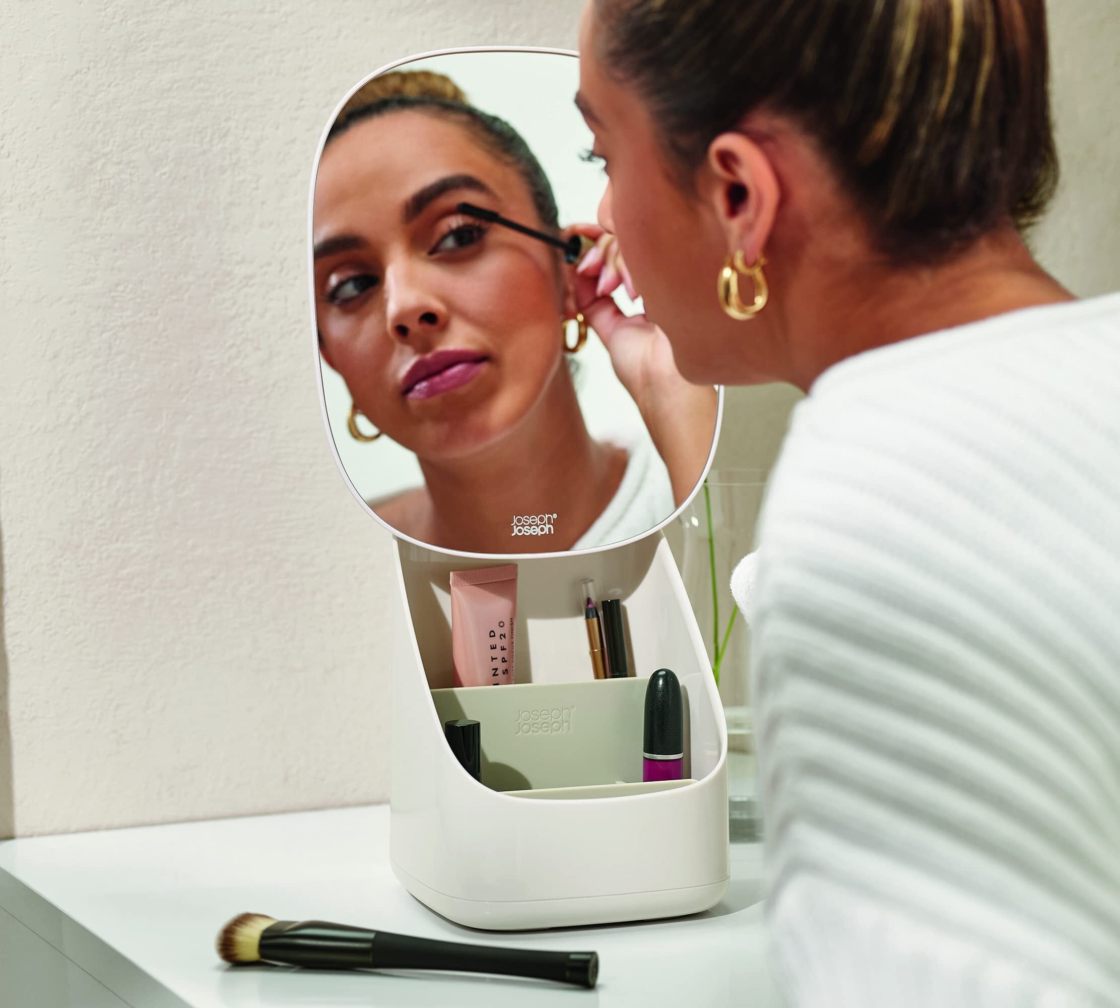 【Joseph Joseph】イギリス発のプレミアムブランドが手掛ける、収納機能付きメイクミラー。コスメオーガナイザーと鏡を一体化したスマートデザイン