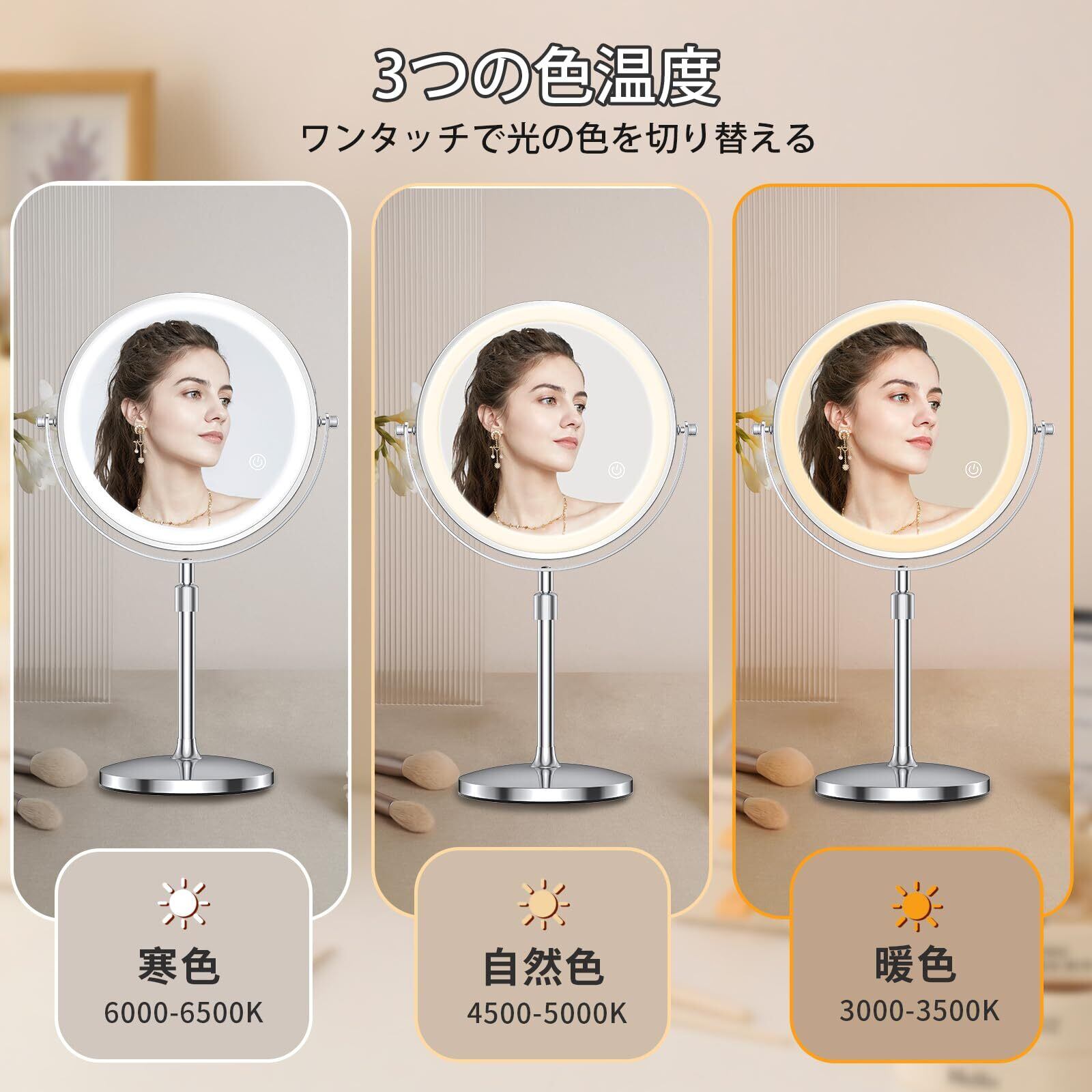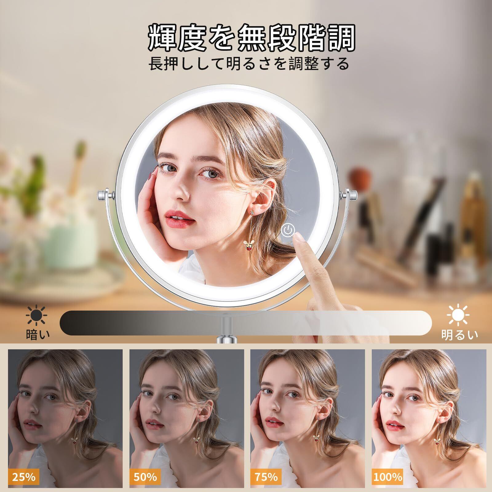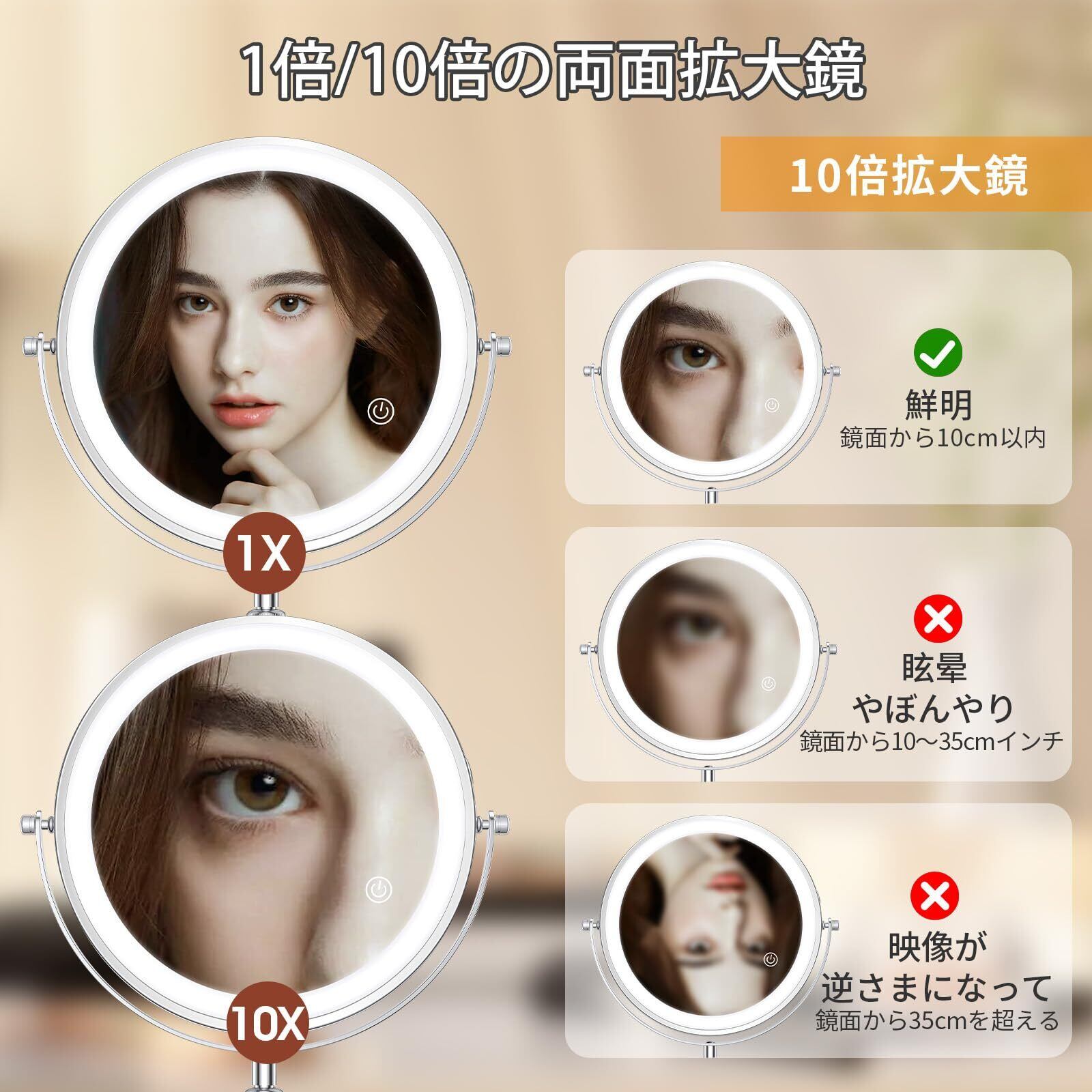 MILPROX 化粧鏡 ライト付き 女優ミラー 高さ調整 拡大鏡 卓上ミラー 8インチ USB充電式 2000mAh大容量 1倍10倍拡大鏡 寒暖自然色調節 明るさ調節 メイク メモリー 消し忘れ防止 タッチ式 360度回転 スタンドミラー