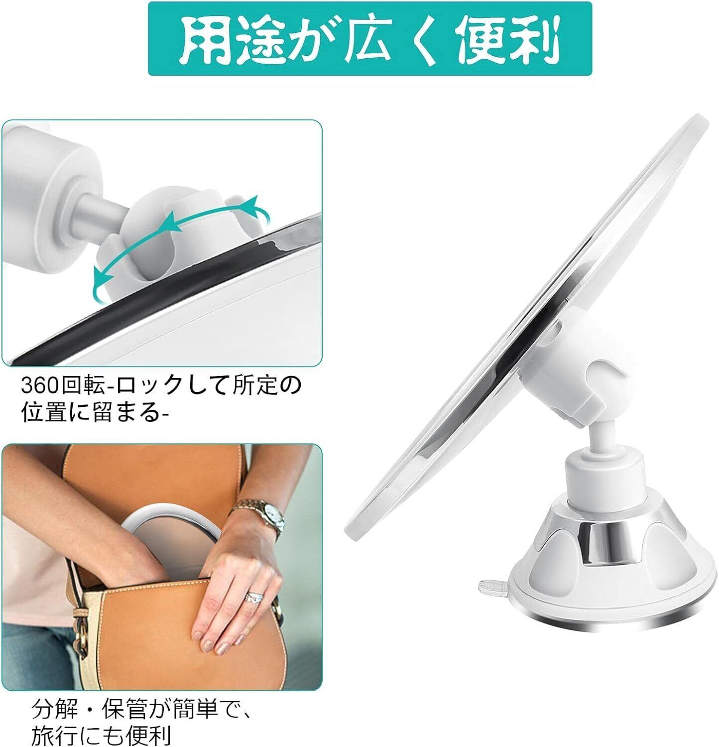 【360度ミラー】ミラーを360度回転させて、必要な角度を得ることができます。360度の回転アームにより、シェービングミラーを任意の方向に配置できます。鏡の直径は17.3cmです。 バニティミラーは適切なサイズで、旅行に適しています。