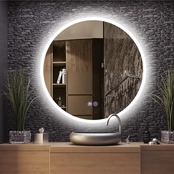 ミルオ君の鏡工房のLEDミラーは、洗面台やバスルームにぴったりのサイズ(直径60cm)で、おしゃれな円型デザインが魅力です。インテリアにもマッチし、空間をよりスタイリッシュに演出します。
