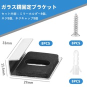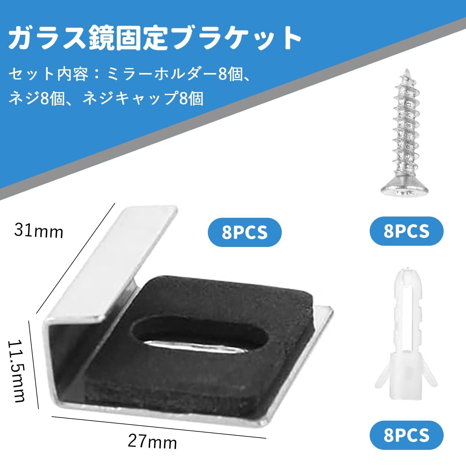商品仕様:セット内容ガラスクリップ8個、ネジ付き。 サイズ:3.2x2.4cm、内径約7mm。このミラー取り付けブラケットセットは、約4-6mmのミラーの取り付けに適しています。ご購入前に鏡のサイズをご確認ください。
