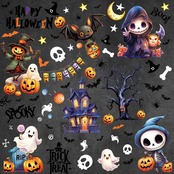 ハロウィン柄:カボチャ、クモ、、墓石、城、コウモリ、幽霊など、ハロウィン特有のキャラクター柄を自由に選んで飾り付けができます。