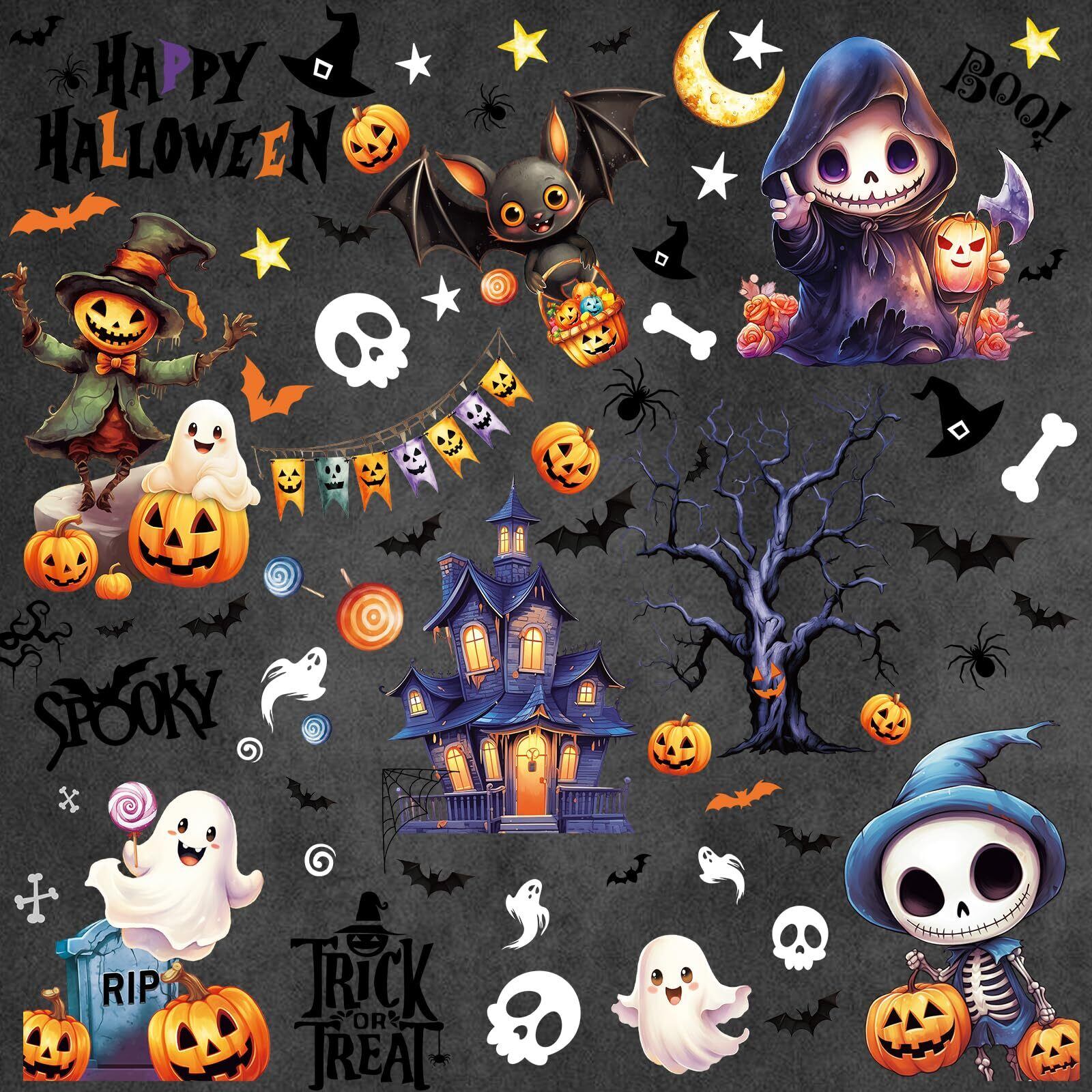DERAYEE ハロウィン ウォール ステッカー 静電気 幽霊 カボチャ クモ コウモリ 68pcs入り シール 飾り 剥がせる 汚れない かわいい DIY halloween 部屋 窓ステッカー 装飾品 ガラス 窓 鏡