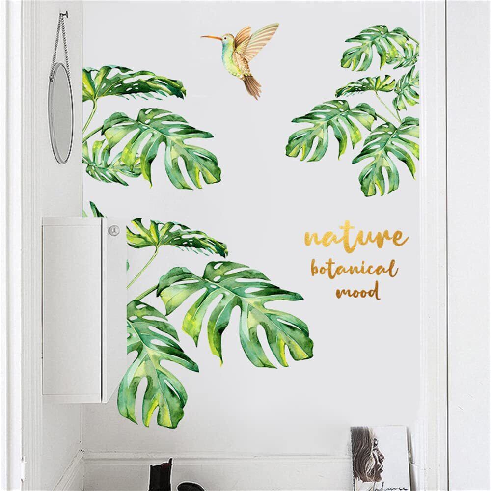 WOHAHA ウォールステッカー 観葉植物 南国 ハーミングバード 緑 景色 壁紙シール はがせる オシャレ 北欧 Nature Botanical Mood ウォールすてっかー 御洒落 リビングルーム 寝室 壁飾り 剥がせる 粘着剤付き