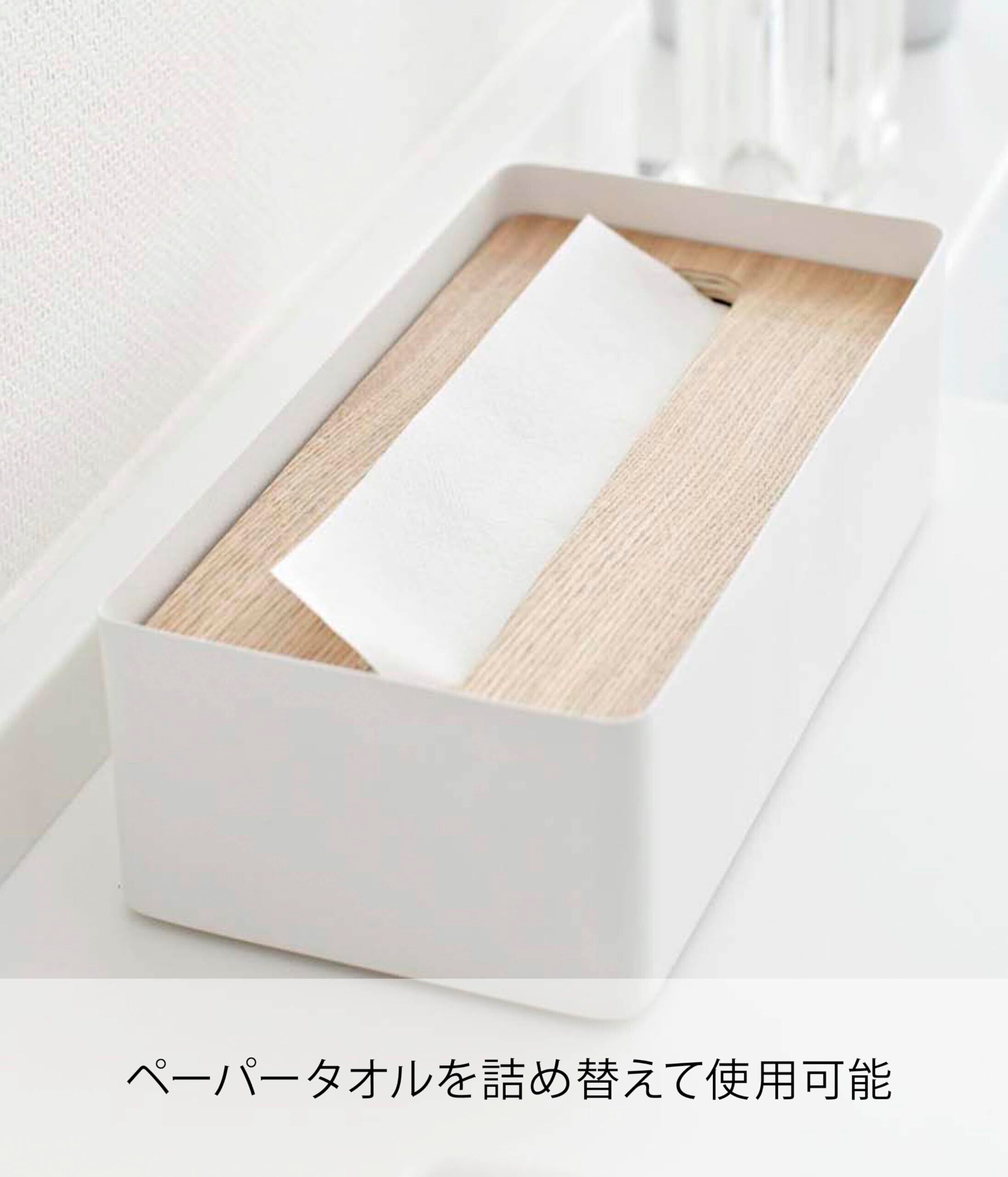 山崎実業(Yamazaki) 蓋付き ティッシュケース L ナチュラル 約W26×D13×H8.2cm リン RIN ティッシュボックス ペーパータオルケース 7730