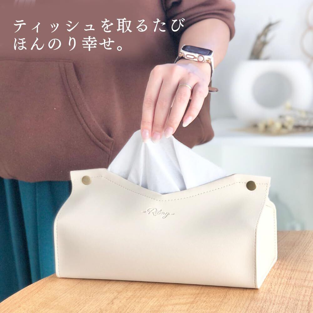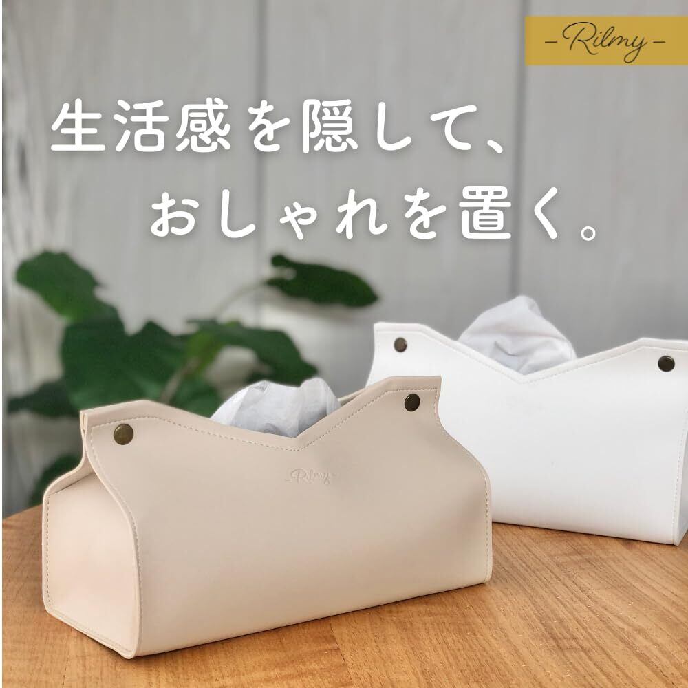 Rilmy リルミー ティッシュケース おしゃれ 可愛い ティッシュカバー ティッシュボックス レザー 北欧 韓国インテリア フェイクレザー 革(ミルキーアイボリー)