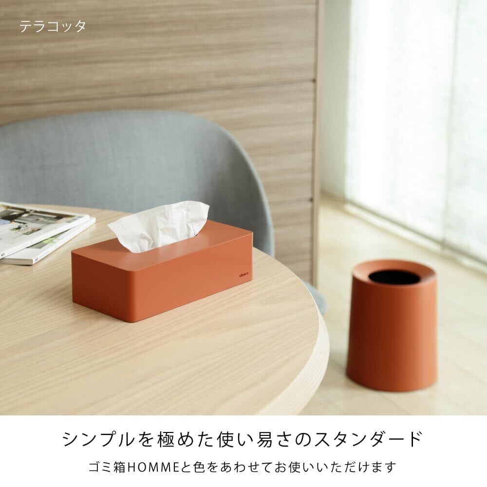 ideacoのボックスグランデは、温かみのあるテラコッタカラーが特徴です。どんなインテリアにもマッチし、リビングやキッチン、オフィスのデコレーションに最適です。美しいデザインで、見るたびに嬉しくなるティッシュケースです。