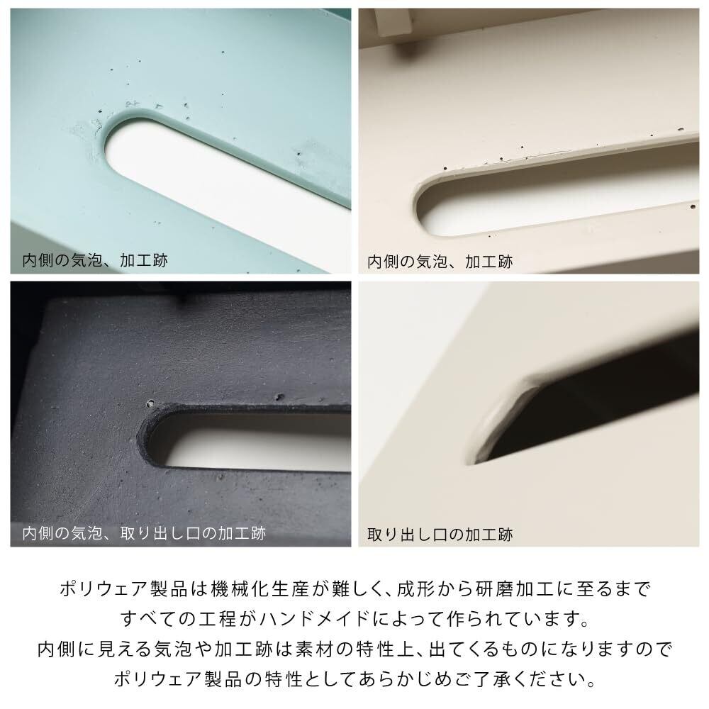 シンプルを極めた使い易さのスタンダード 箱ティッシュ専用仕様です。 ティッシュ箱の上から被せるだけで、内側に施した突起がティッシュ箱を挟み込んで固定するため、ケースを持ち上げても落ちません。 ケースには適度な重みがあるため、箱が浮き上がらずスムーズにティッシュを引き出せます。 陶器のようなしっとりしたマットな質感がラグジュアリーなティッシュケースです。
