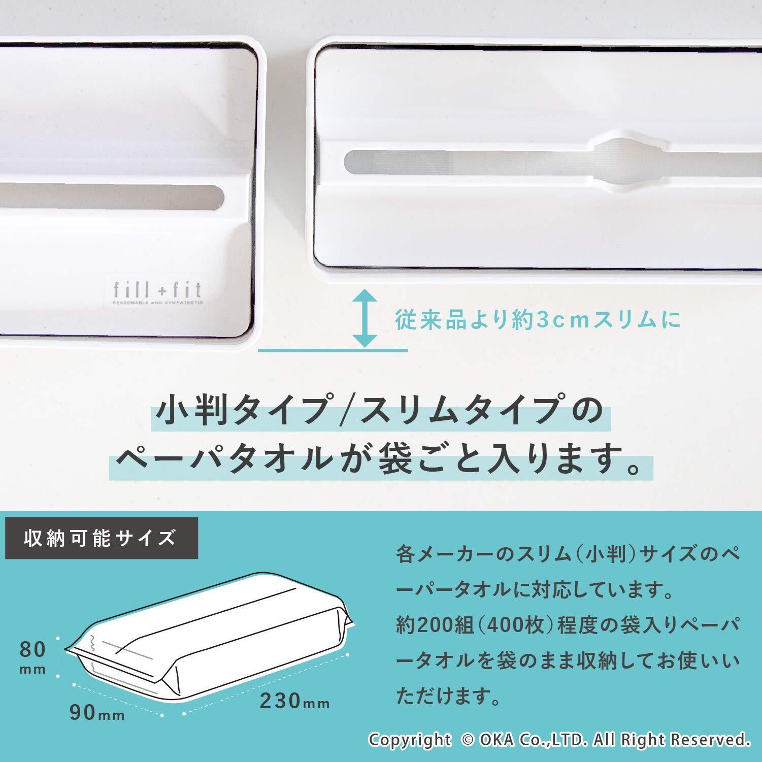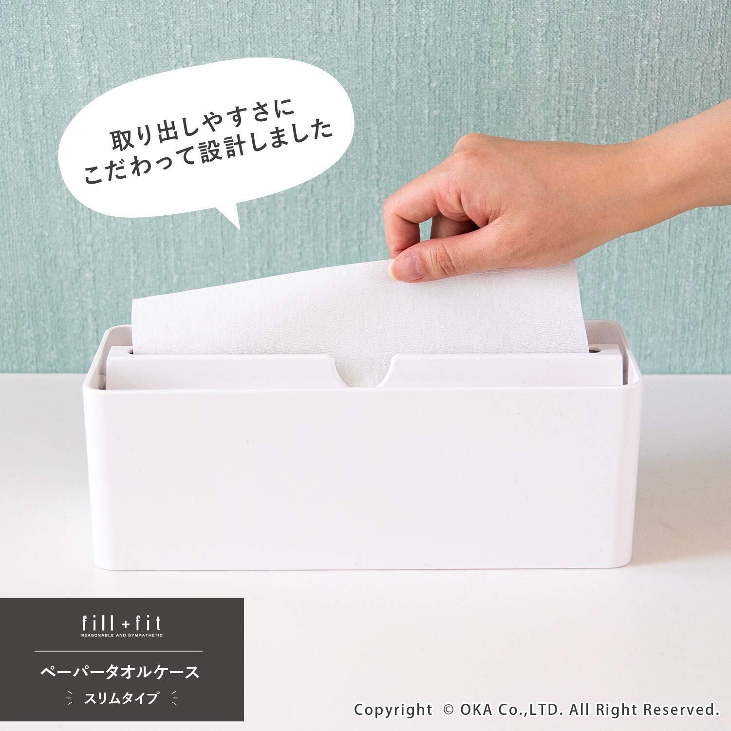 オカ(OKA) fill+fit(フィルフィット) ペーパータオルケース リップタイプ スリム ホワイト (ティッシュケース 小判)