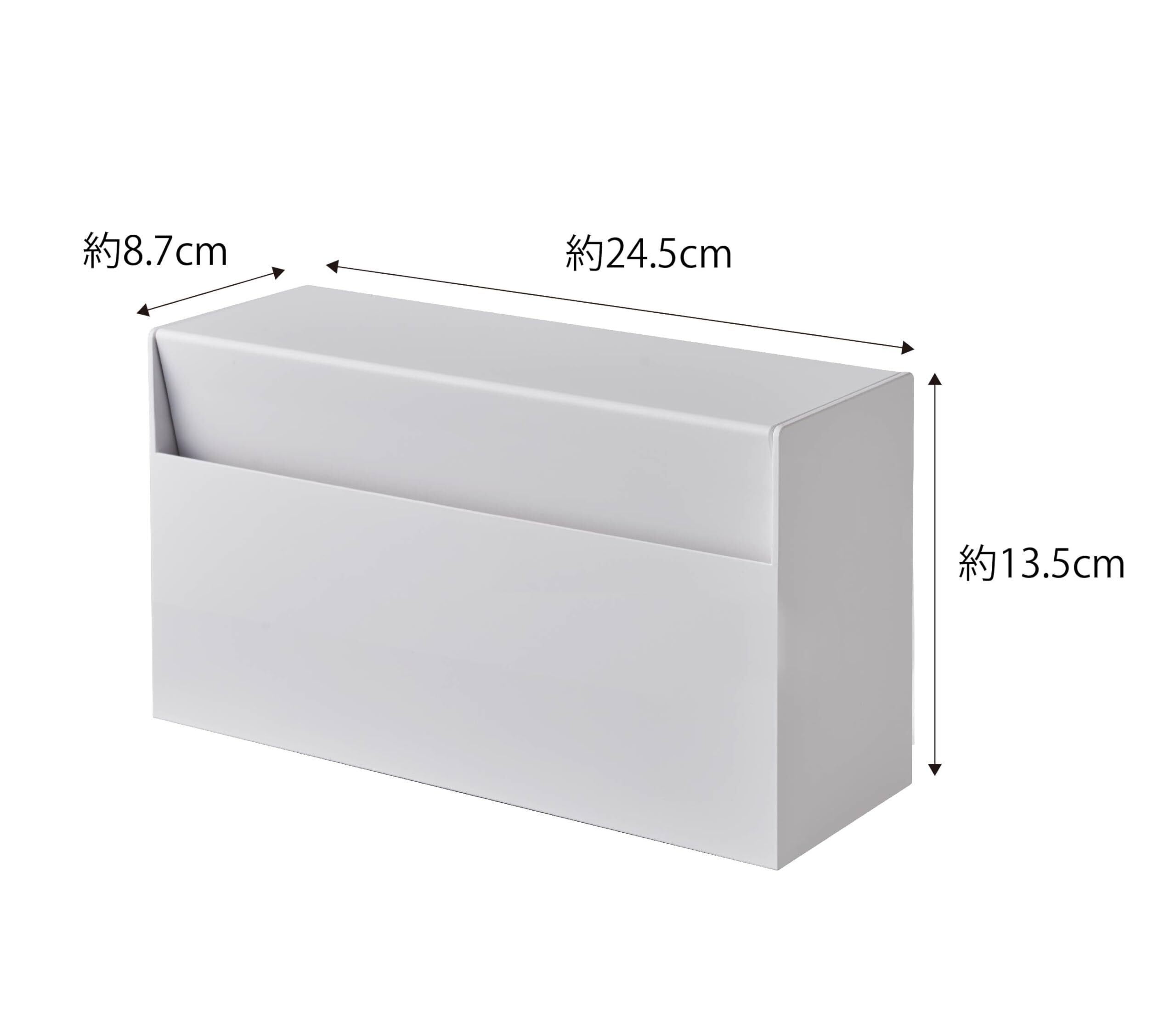 耐荷重:約500g ▪耐熱:フィルムフック:60℃ ▪耐冷:フィルムフック:-40℃ ▪対応サイズ:約W23.5×D7(D6.4※石こうボード使用時)×H12cm以内のボックス・袋入りティッシュペーパー・キッチンペーパー・ペーパータオル(レギュラーサイズ)に対応