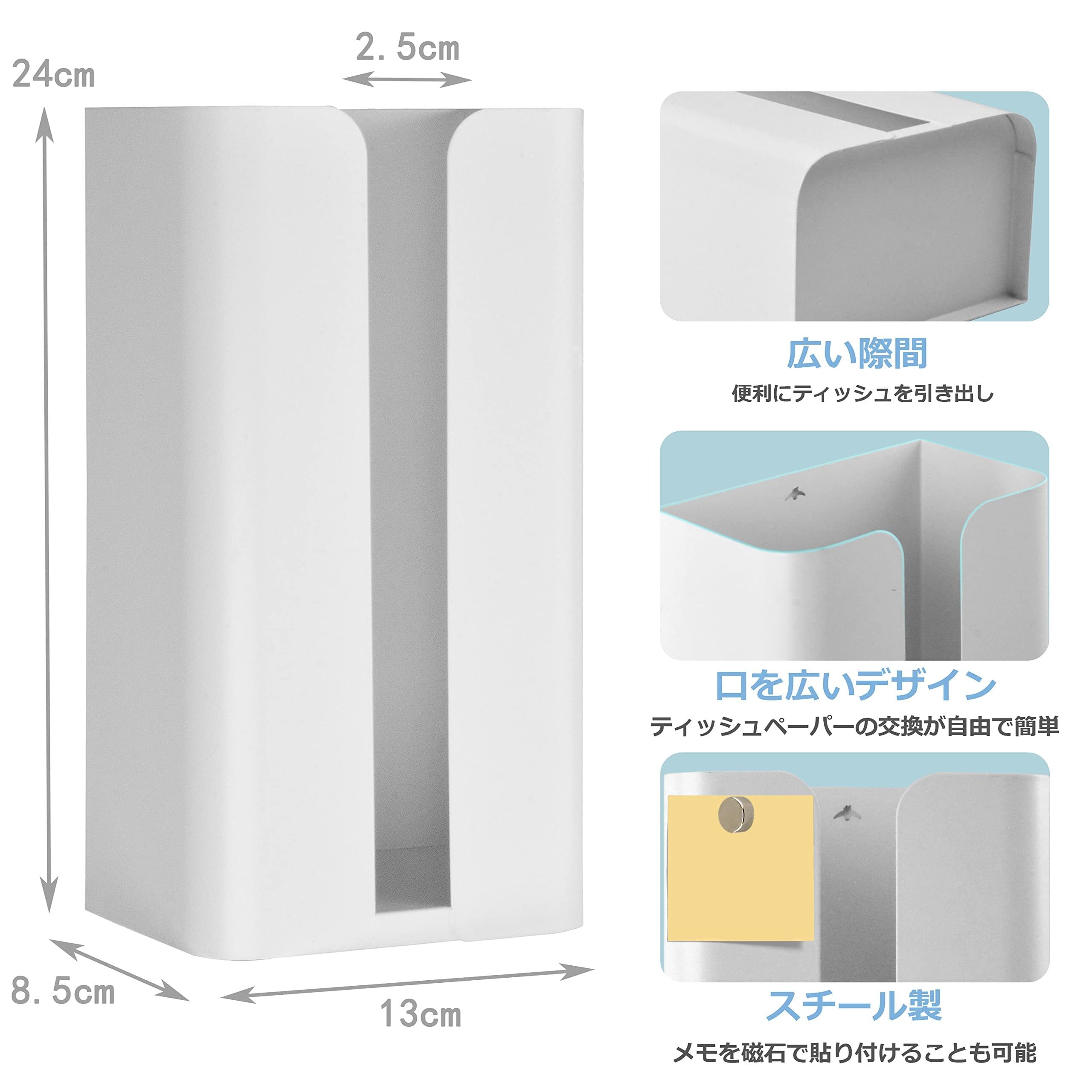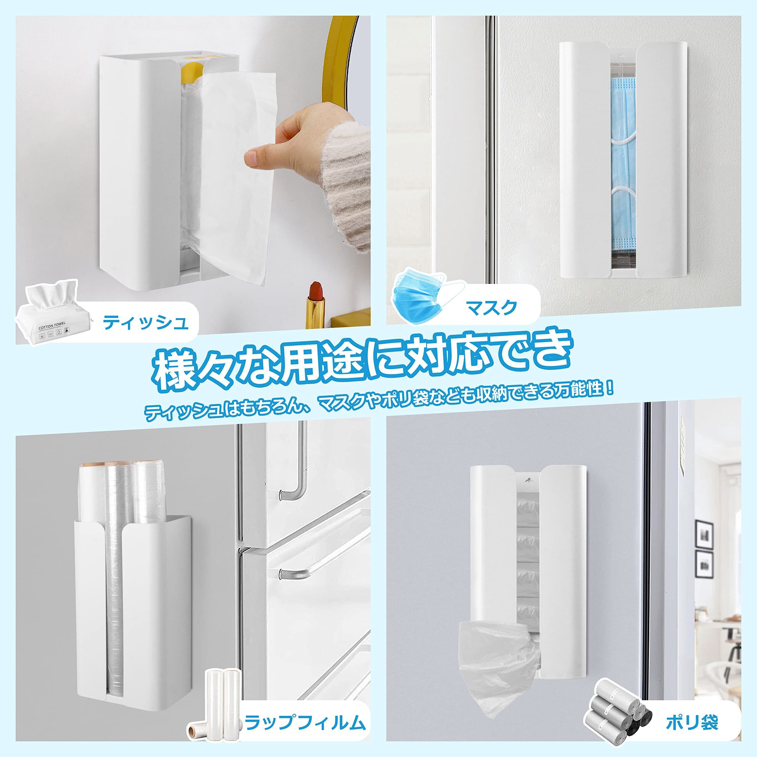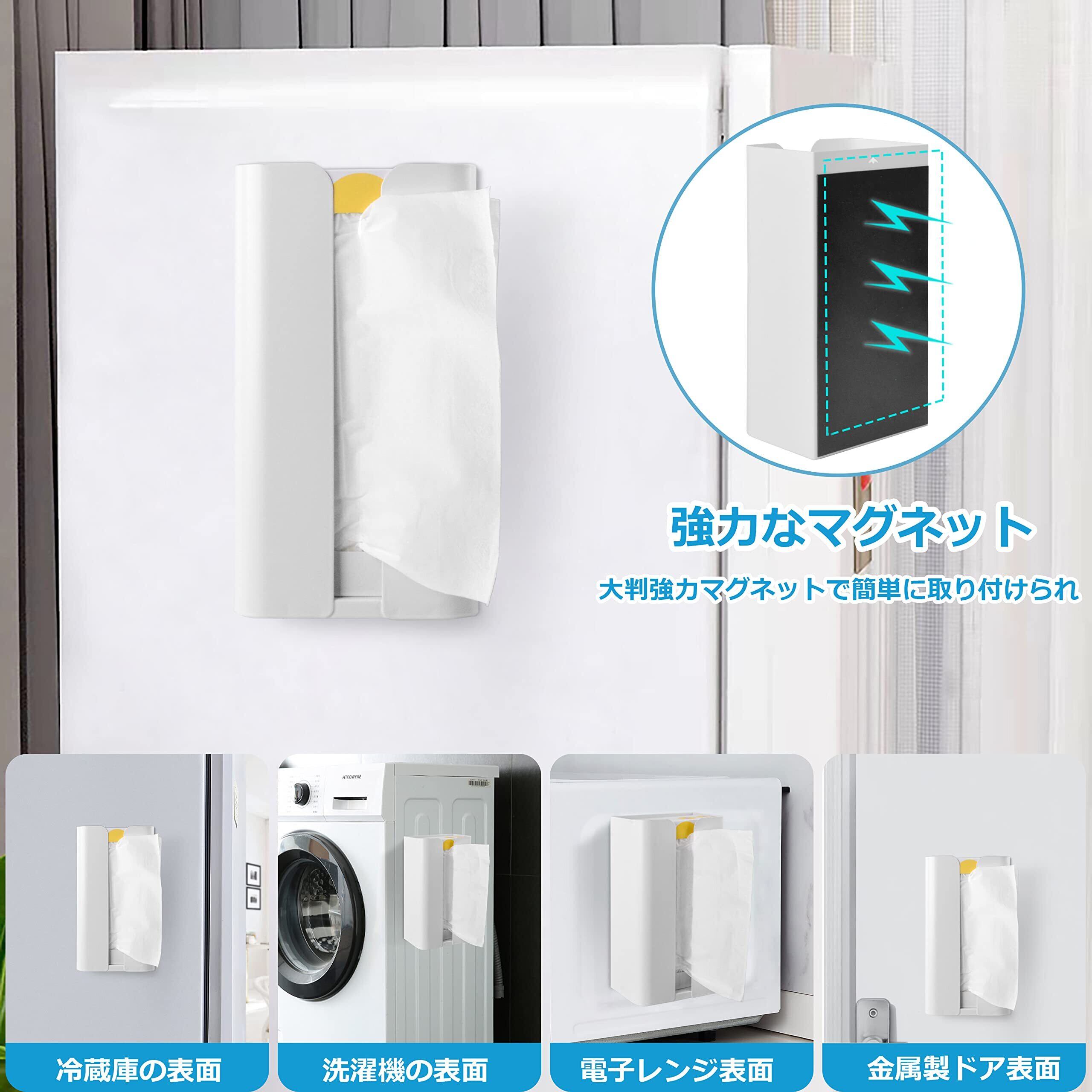 マグネットティッシュケース マグネットティッシュボックス マグネットペーパーホルダー マグネットペーパータオルケース 壁掛け ティッシュ収納 キッチン リビング 浴室 洗濯機横 冷蔵庫横 オフィス ホワイト HOGAWAY