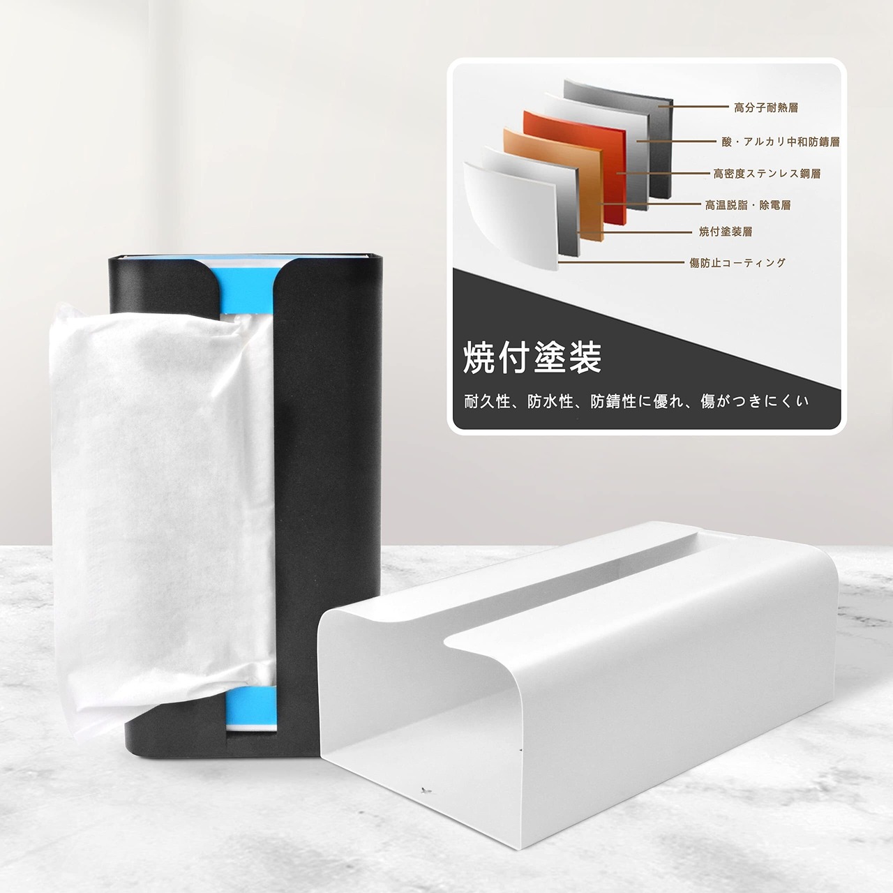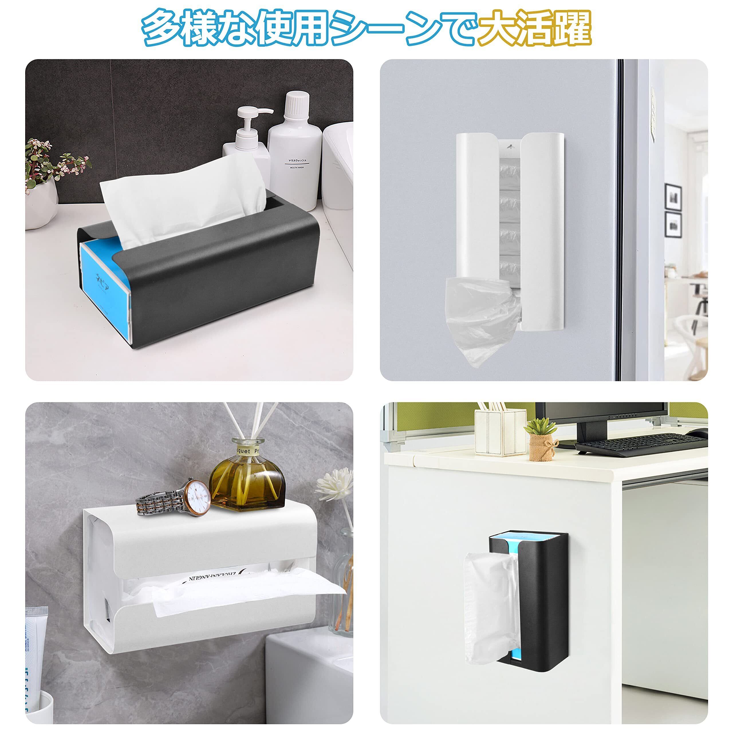 【多様の使用方式】このペーパーホルダーは横置きも縦置きもよろしいです。様々な場所に適しており、ペーパータオル、ゴミ袋、ラップなどを入れることができます。磁気吸着の設計により、このマグネットティッシュケースはキッチンや洗面所など必要な場所に設置する事ができ、どんな場所にもなじみやすいシンプルなデザイン。普通のデスク用ティッシュケースにしてもよろしいです。