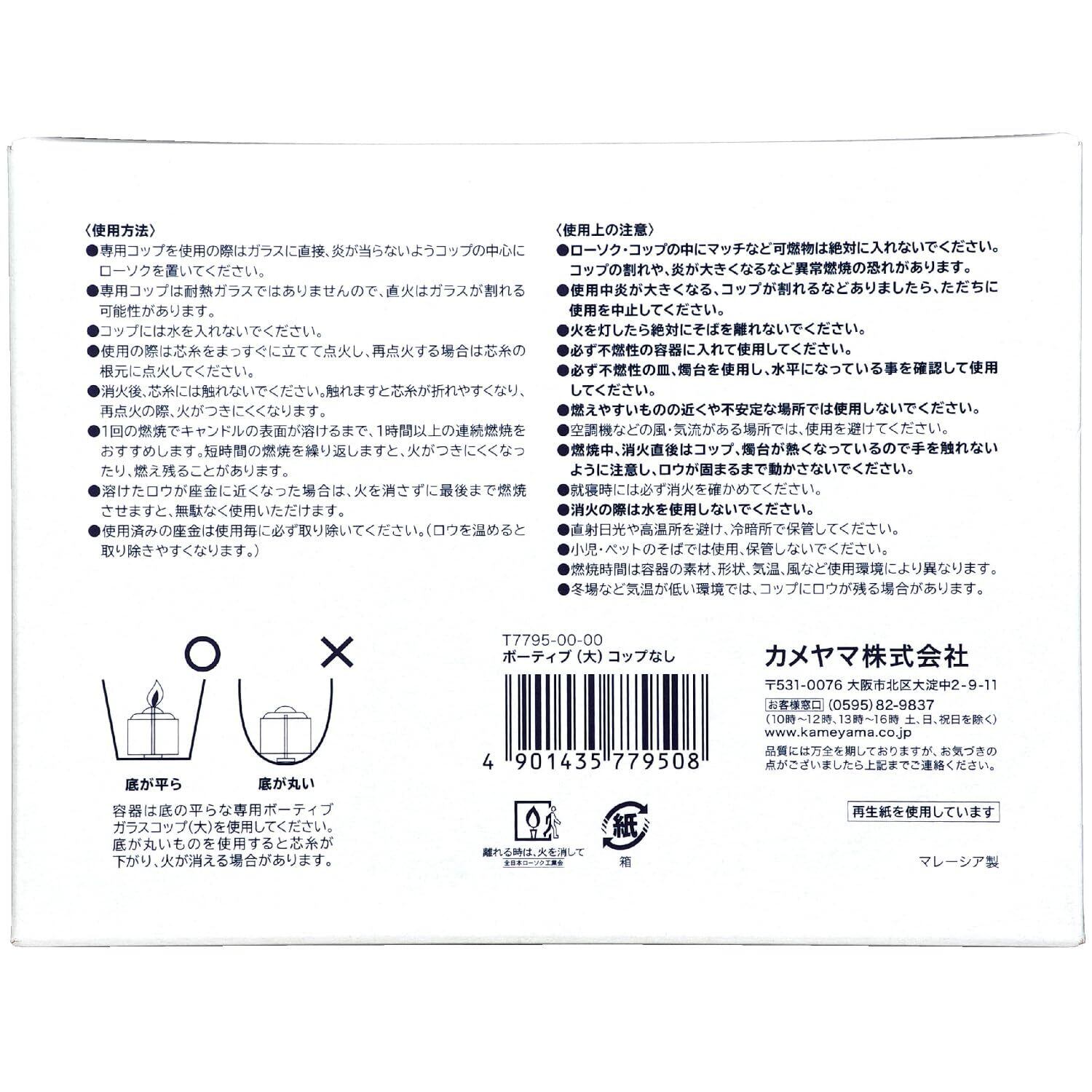 カメヤマ ボーティブ(大) コップなし 12個入 約8時間 ローソク