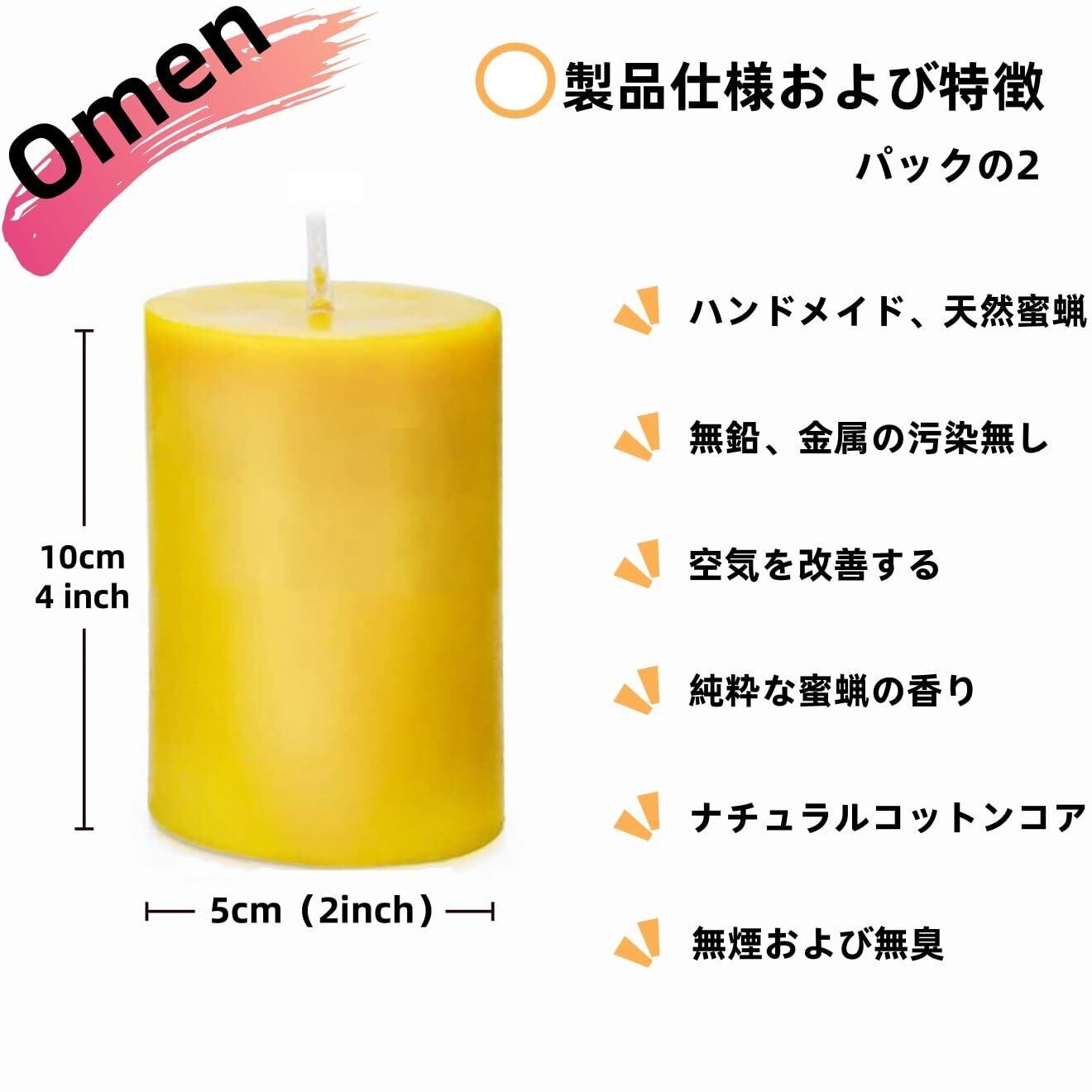 Omen 天然蜜蝋ピラーキャンドル 煙が出ない滴り落ちない純粋な蜜蝋キャンドルセット 1.9x3.9インチ(2パック)