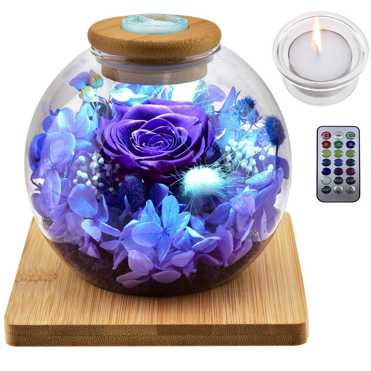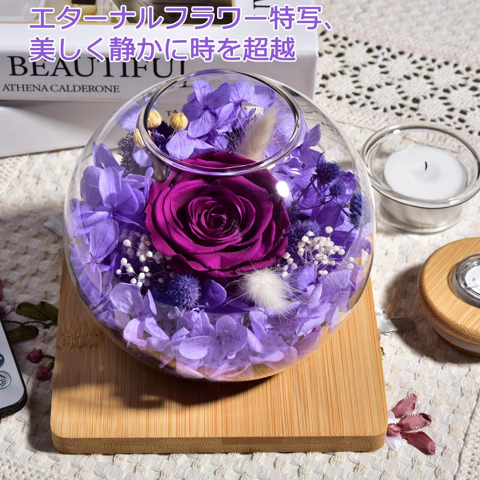母の日 プリザーブドフラワー プレゼント ブリザードフラワー ガラスドーム 優雅なバラキャンドルホルダー 結婚祝い 記念日 誕生日 白い日のプレゼント人気 引っ越し 入学 卒業 新築祝いの贈り物 お見舞い ぶりざーどフラワー ギフト 人気 (紫)