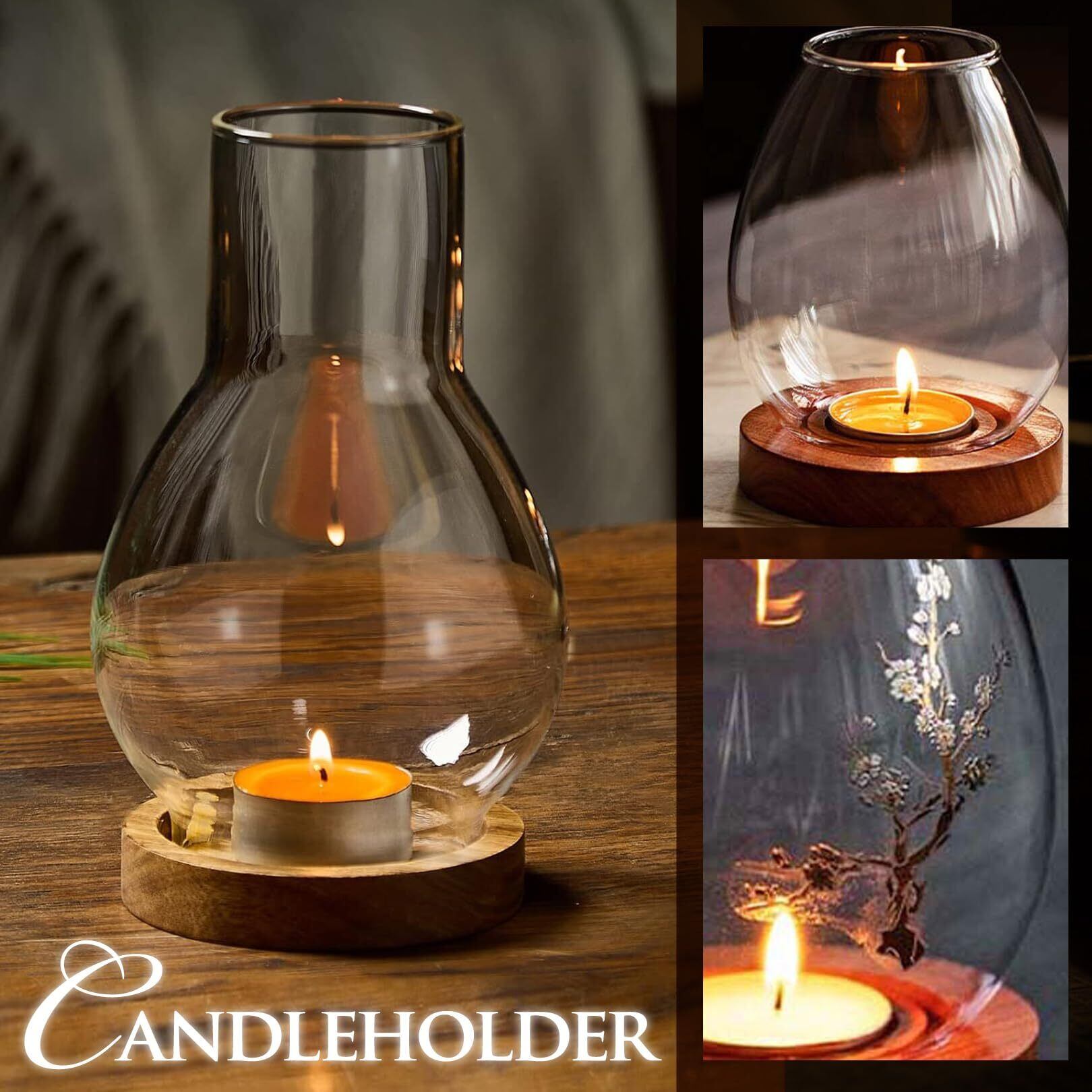 PIENSE キャンドルホルダー キャンドルスタンド ティーライト アンティーク グラス ガラス 木 (A:ランプ型) [並行輸入品]
