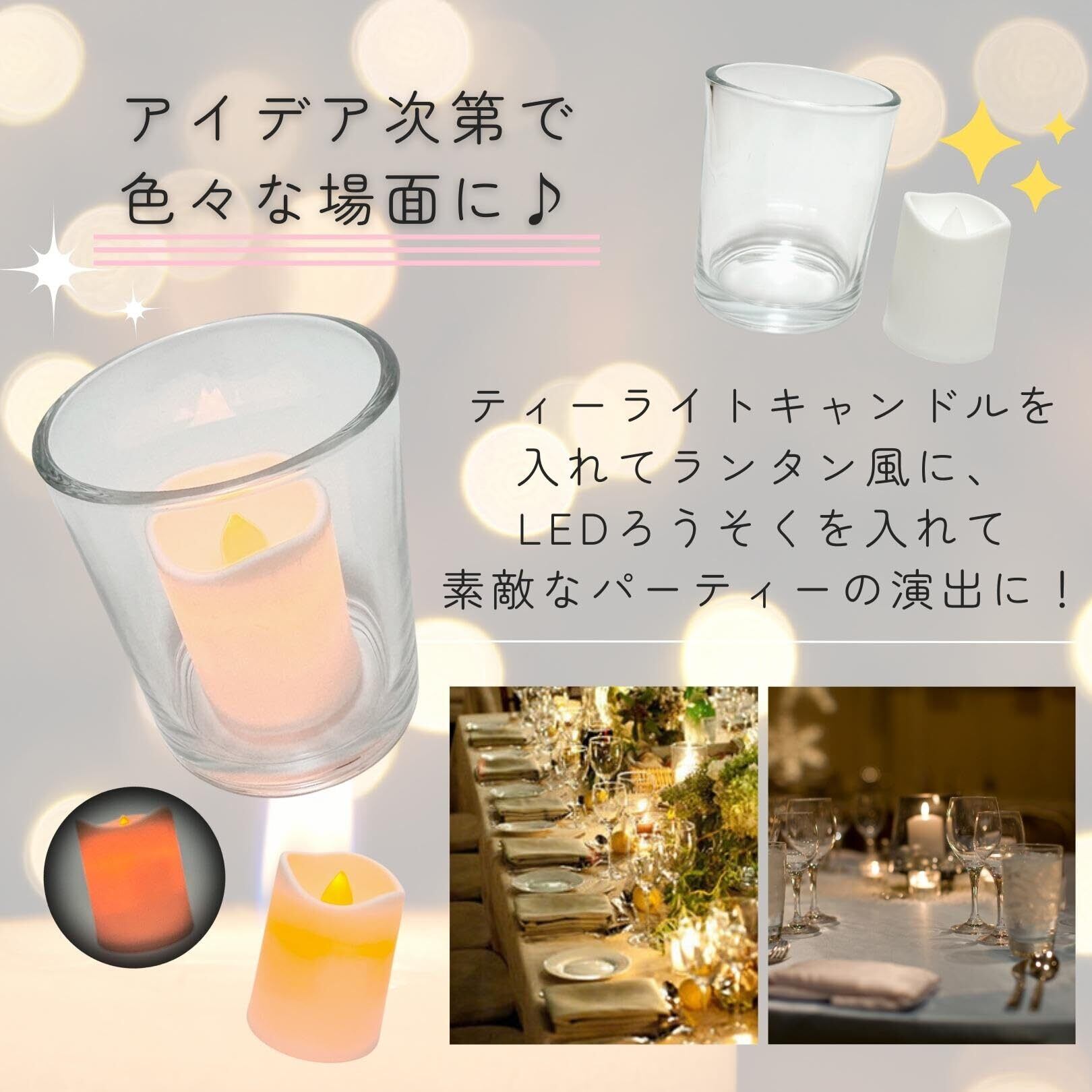 パーティーやインテリア用に、LEDキャンドルを入れるだけでも素敵な演出として安全にお使いいただけます。