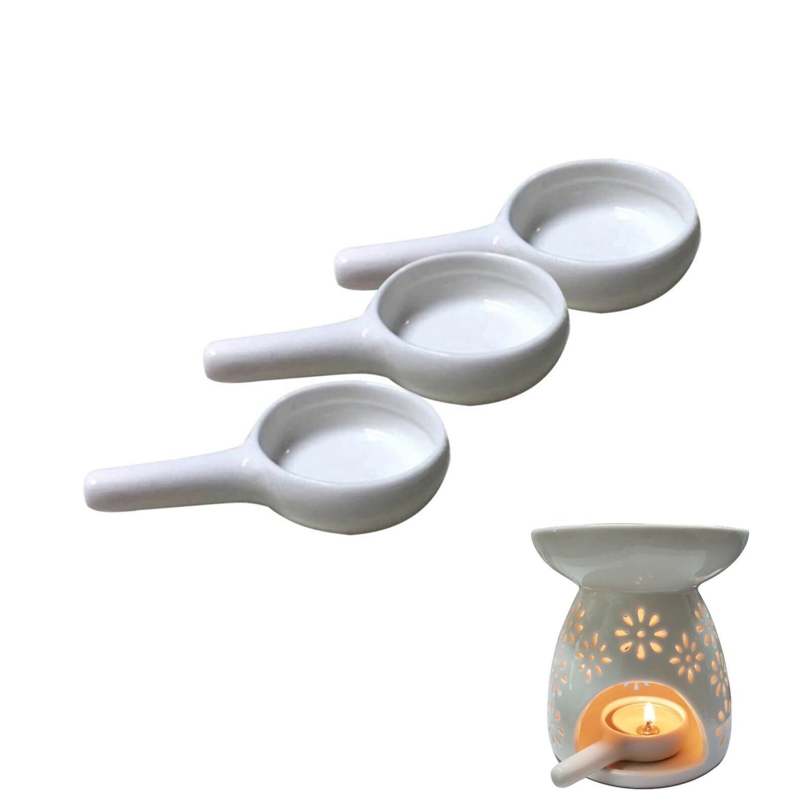 Ciieeo 3個セットのセラミックキャンドルトレイ ハンドル付きアロマストーブキャンドルホルダー ティーライトキャンドル用 コンパクトで持ち運び便利なデザイン