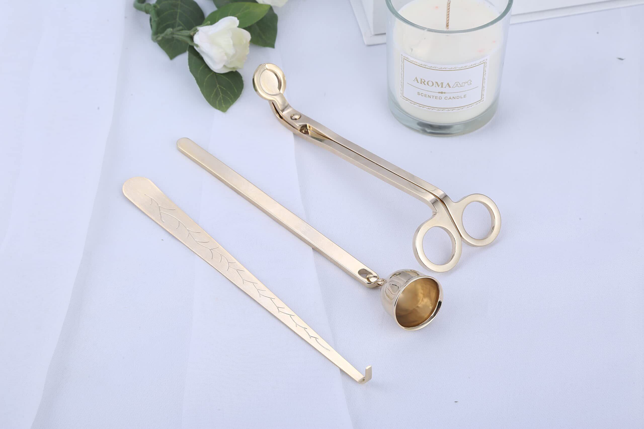このセットには、キャンドルの炎を安全に消すためのツールや、芯を整えるためのはさみが含まれており、火を消す際の煙の発生を抑える機能があります。芯切りばさみは、鋭い刃でスムーズに芯をカットできるため、燃焼効率を向上させ、快適な使用が実現します。