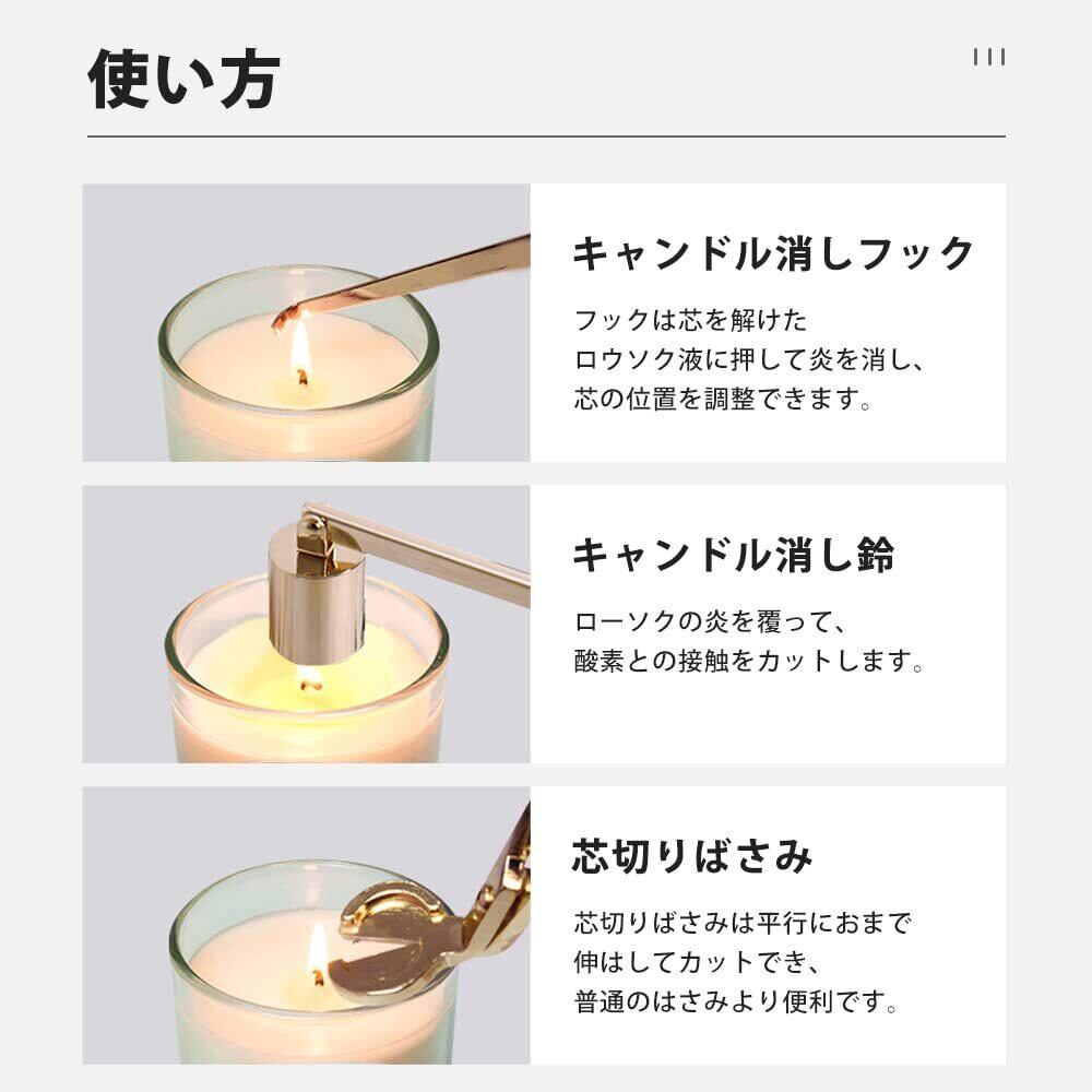 Surieen ろうそく火消 しろうそく はさみ 芯切りはさみ キャンドルトリマー 芯切り アロマランプ家庭用 ろうそく消 仏壇用キャンドルアクセサリーキャンドル火消しツール3点セット