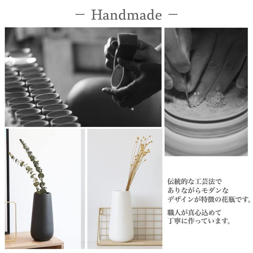 +kuRo 花瓶 フラワーベース 陶器 北欧 おしゃれ 大きい インテリア 花器 生花 ドライフラワー セラミックス (ホワイト, 20cm)