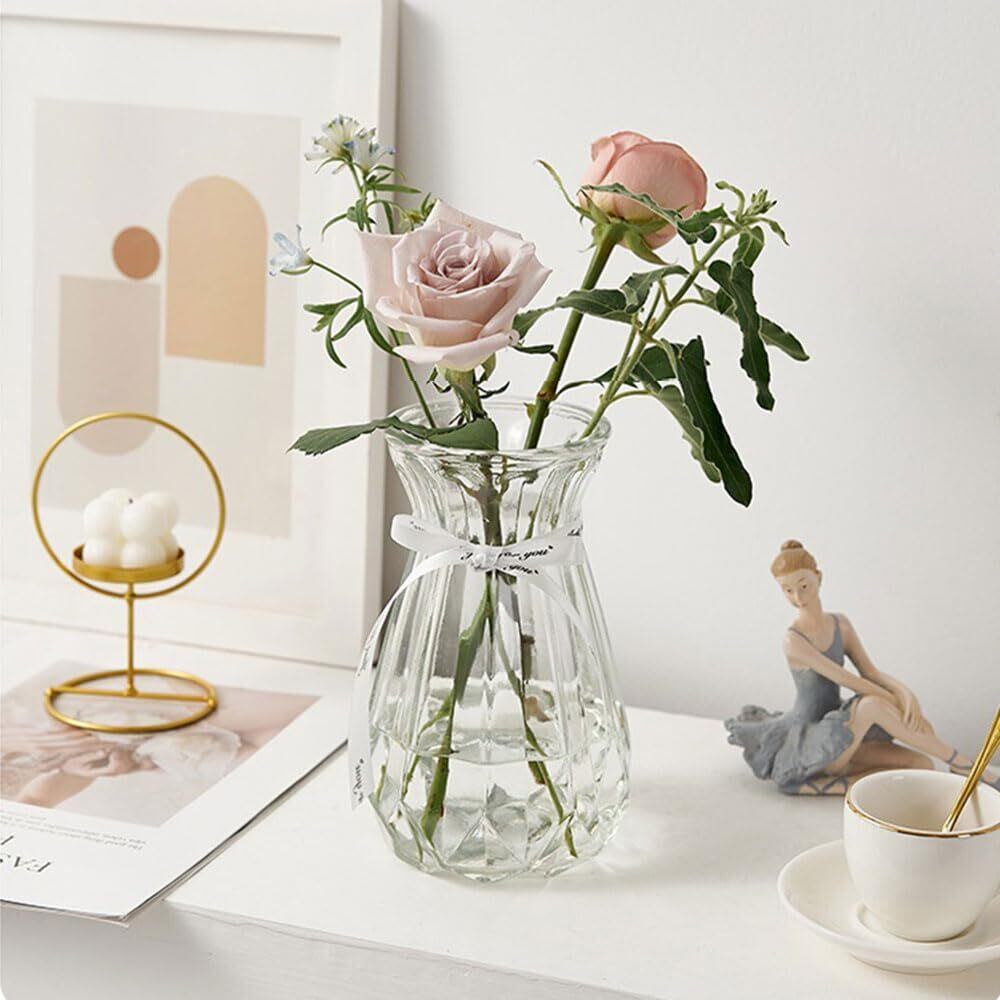 ZYVAHEHP 花瓶 ガラス おしゃれ 花瓶 一輪挿し シンプル花器 透明 フラワーベース 装飾家の装飾 高さ15CM