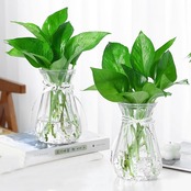 1. 高品質ガラス素材:この花瓶は、透明度が高く、美しい光沢を持つ高品質なガラスで作られています。精細な仕上げにより、表面が滑らかで、花や植物の自然な美しさを引き立てます。安全で環境に優しい素材を使用しており、家庭用として最適です。