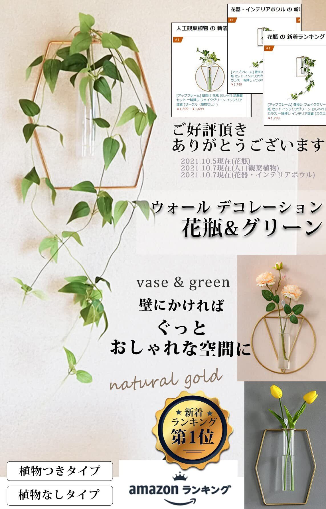 おしゃれで置き場所を選ばない壁掛けタイプの壁飾り:インテリア グリーン 一輪挿し 壁かけタイプのため置き場所を選ばず、お部屋に季節感を取り入れたり清涼感をアップできます。北欧風のゴールドフレームつきの高級感あるインテリア雑貨でおすすめです。ウォールアート としても選ばれています。玄関飾りやトイレ壁飾りとして優秀です。