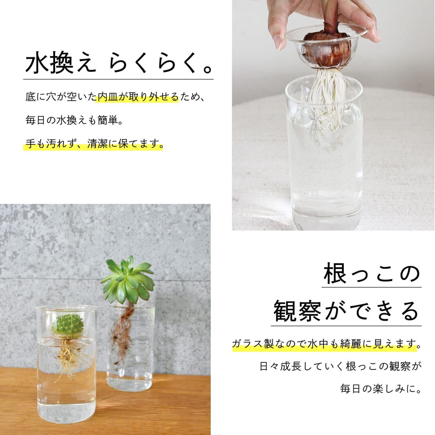 球根やサボテン、アボカドの種などの水栽培に使いやすいガラスベース