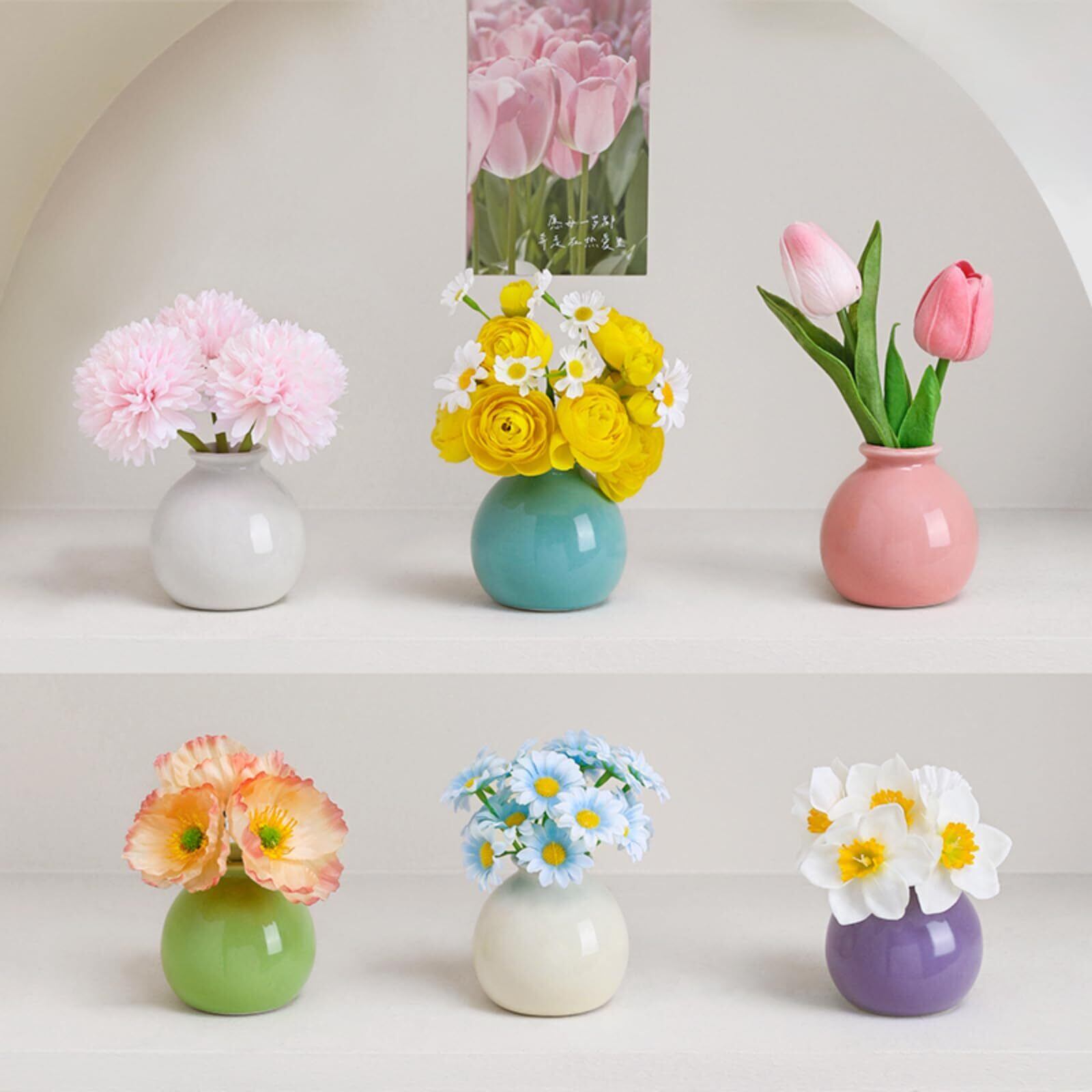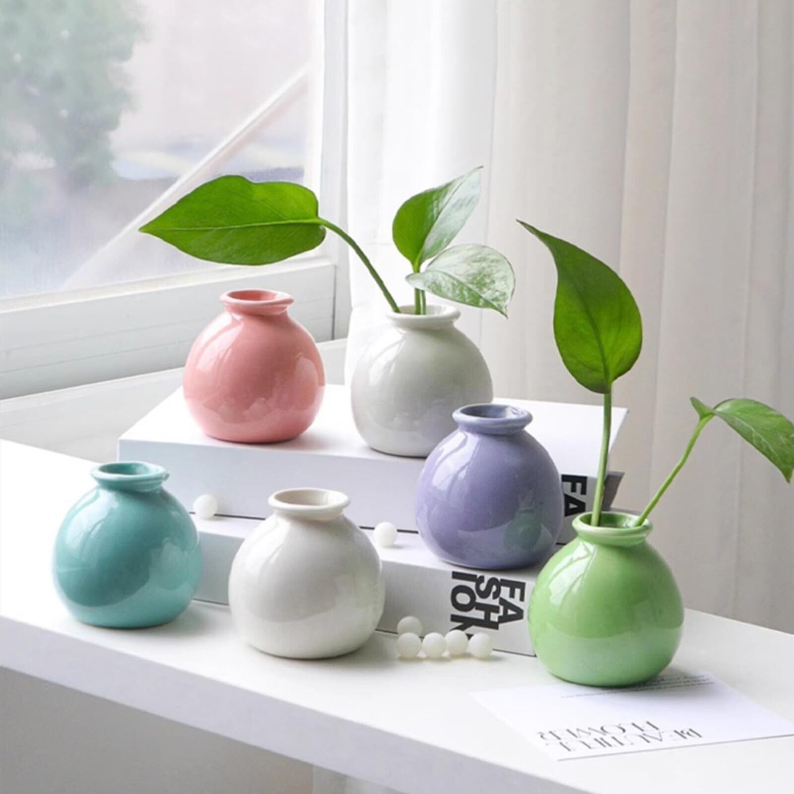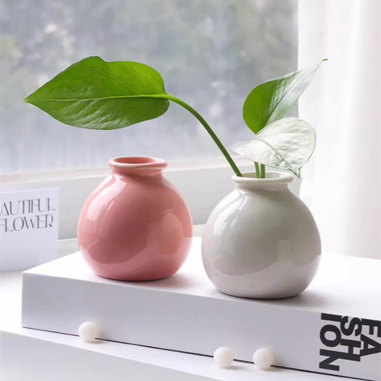 花瓶 陶器 ミニ花器 一輪挿し セラミック フラワーベース 和風 小さい かびん 北欧 セラミック 一輪挿し 手作り花瓶ホワイト ドライ花工芸品 オフィスホーム装飾 (白)