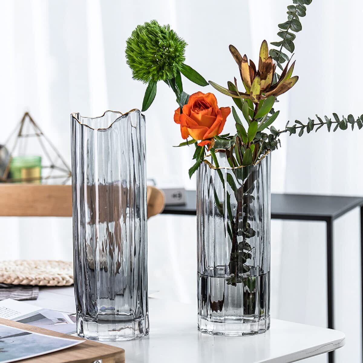 AIVAR ガラスベース 花瓶ガラス 大 25cm 30cm 花器 フラワーベース ガラスボトル 透明 北欧 アレンジ インテリア 水栽培 生け花 造花 おしゃれ シンプル インテリア雑貨 飾り瓶 北欧 レトロ風 (グレー-高さ:25cm)