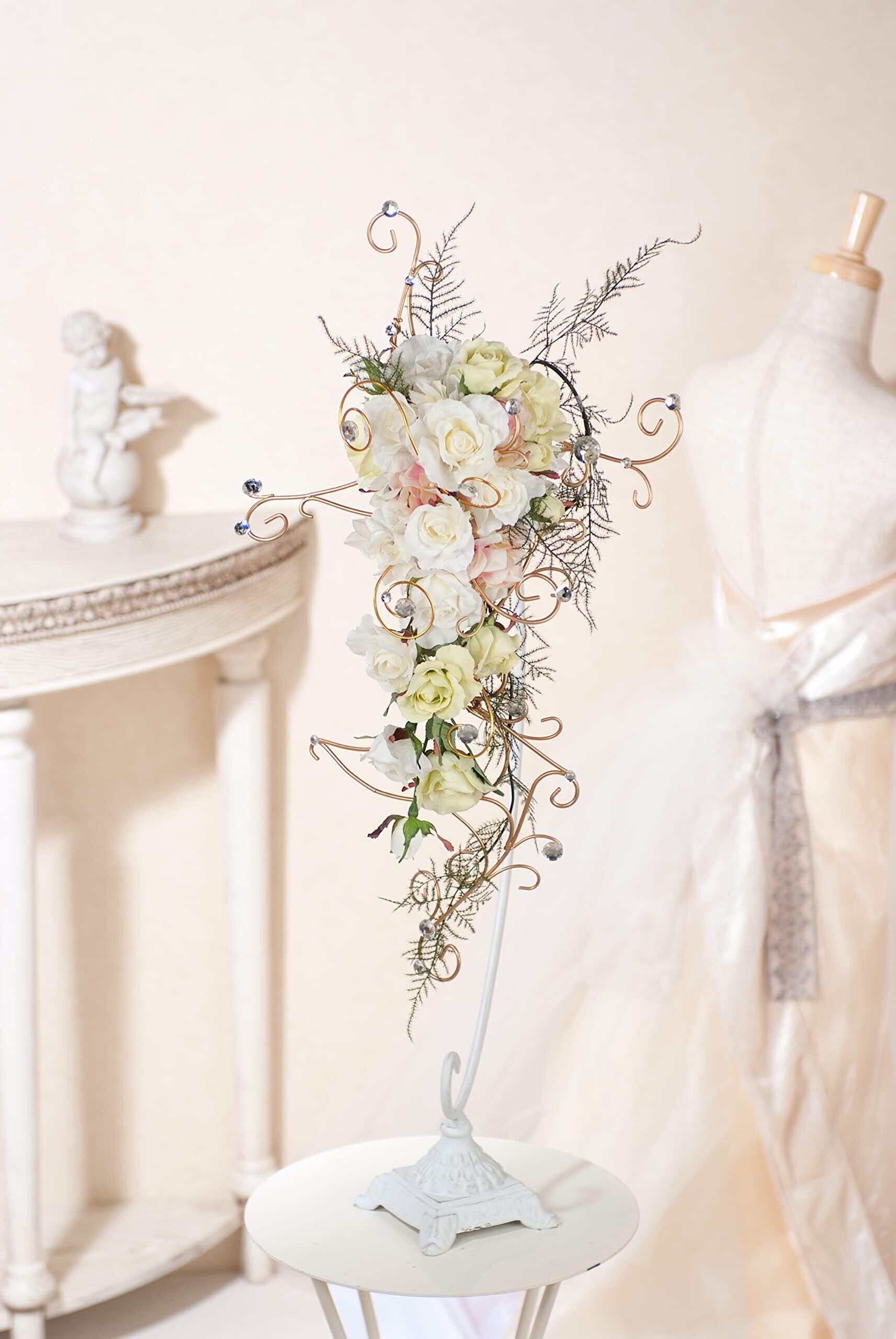 ワイヤーベース製のスタンド花器 ワイヤーブーケホルダースタンド20H(ホワイト)