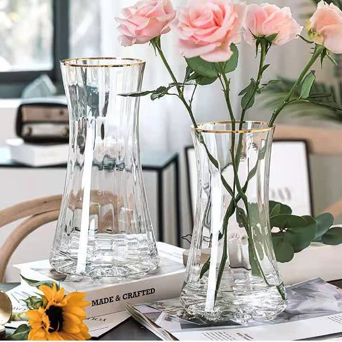 ガラスの花瓶・フラワーベースは花の美しさを引き出してくれます。ベーシック形状でシーンやインテリアを選ばないガラスベース。切花を飾るのに使い勝手の良いサイズ感のため、季節問わずお使いいただけます