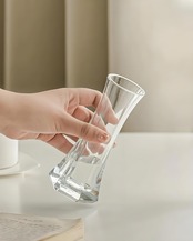 このフラワーベースは、割れにくい特性から、お子様やペットがいるご家庭でも安心してお使いいただけます。どんなインテリアにもマッチするシンプルでおしゃれなデザインは、リビングや寝室、オフィスの装飾にも最適です。透明な素材は、花の美しさを最大限に引き立て、どの角度からでも楽しむことができます。