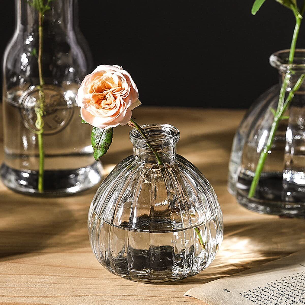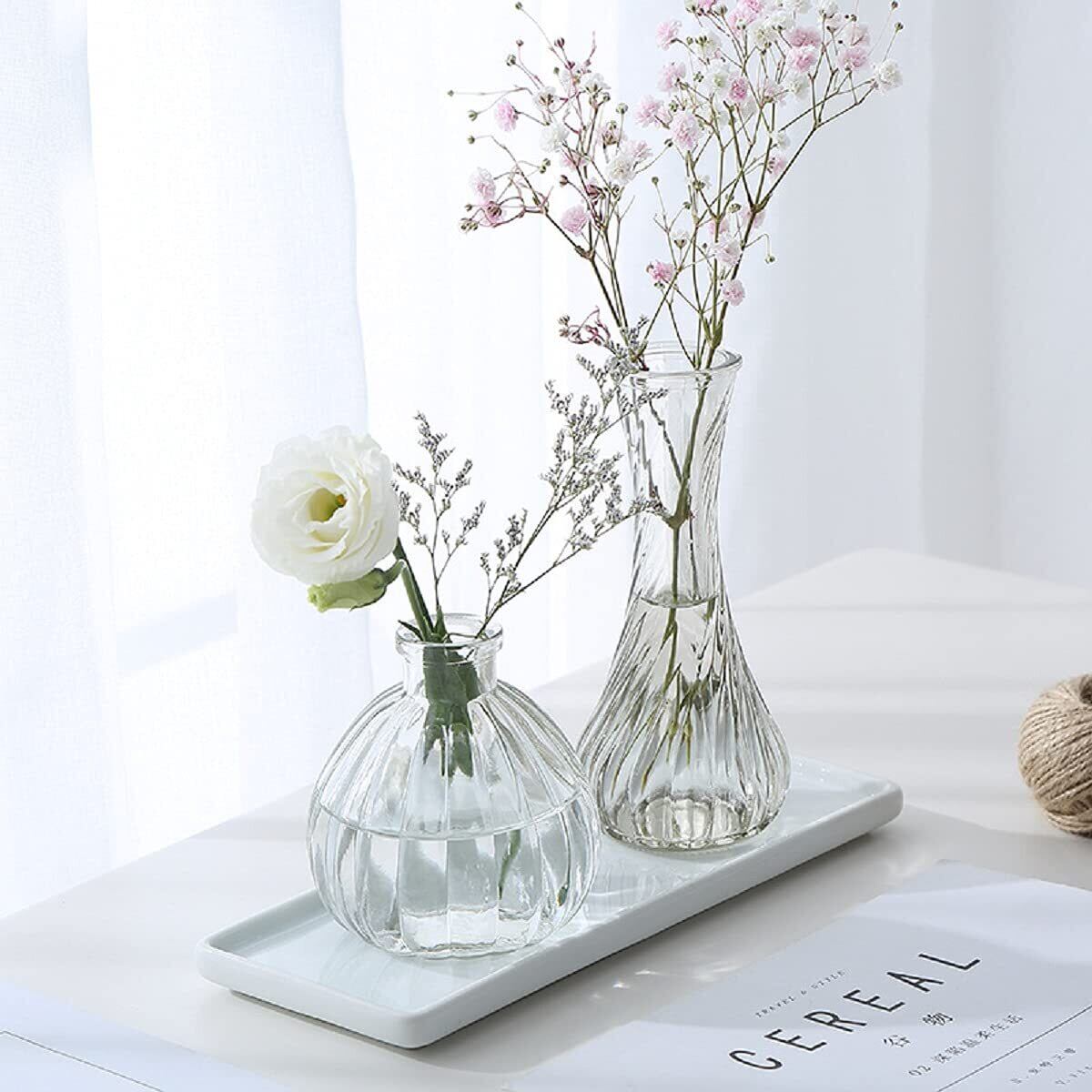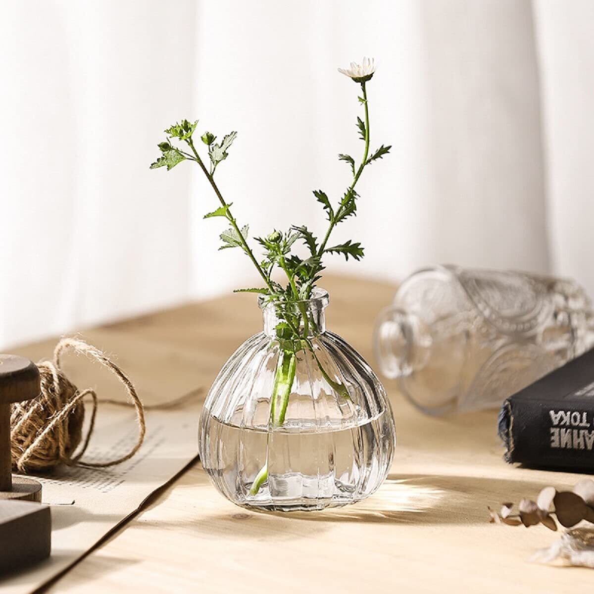 水栽培を楽しむだけでなく、生け花や造花のディスプレイにも最適です。窓辺やダイニングテーブルに飾ることで、明るく生き生きとした空間を演出。個々のサイズ感が異なるため、スタッキングや並べて使うことができ、自由なアレンジが可能です。