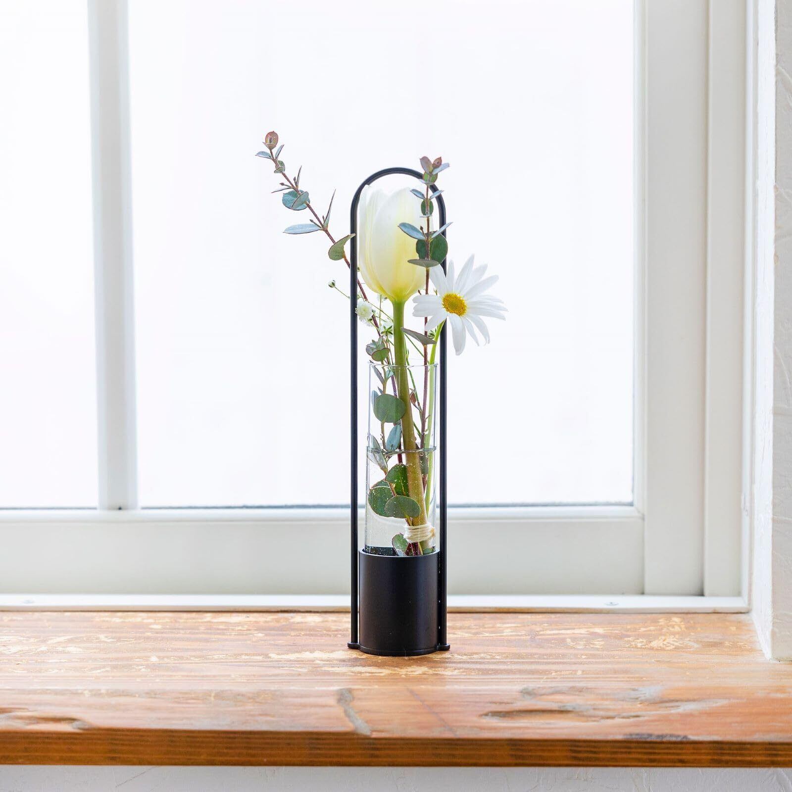 【燕三条製】TETSUNAGI フラワーべース (ブラック) 一輪挿し ハンキング スチール ガラス 試験管 ミニ 壁掛け 日本製 インテリア 植物雑貨 水耕栽培 ドライフラワー 花 ギフト おしゃれ テツナギ T200101