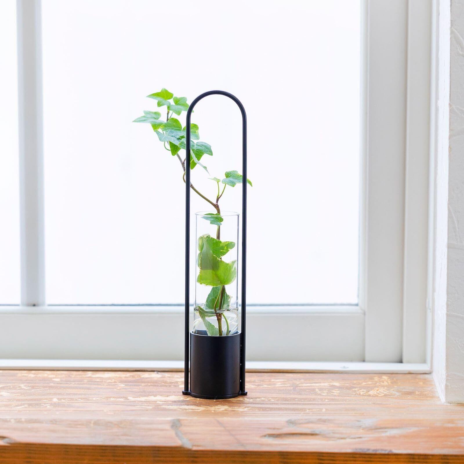 「TETSUNAGI フラワーべース」は、燕三条の職人が丹精込めて製作した一輪挿しです。シンプルでありながらも洗練されたデザインが特徴で、ブラックのスチールフレームとクリアなガラス試験管の組み合わせが、お部屋の雰囲気を一層引き立てます。ハンキングスタイルで飾ることができ、空間に立体感を加え、様々なインテリアスタイルにマッチします。