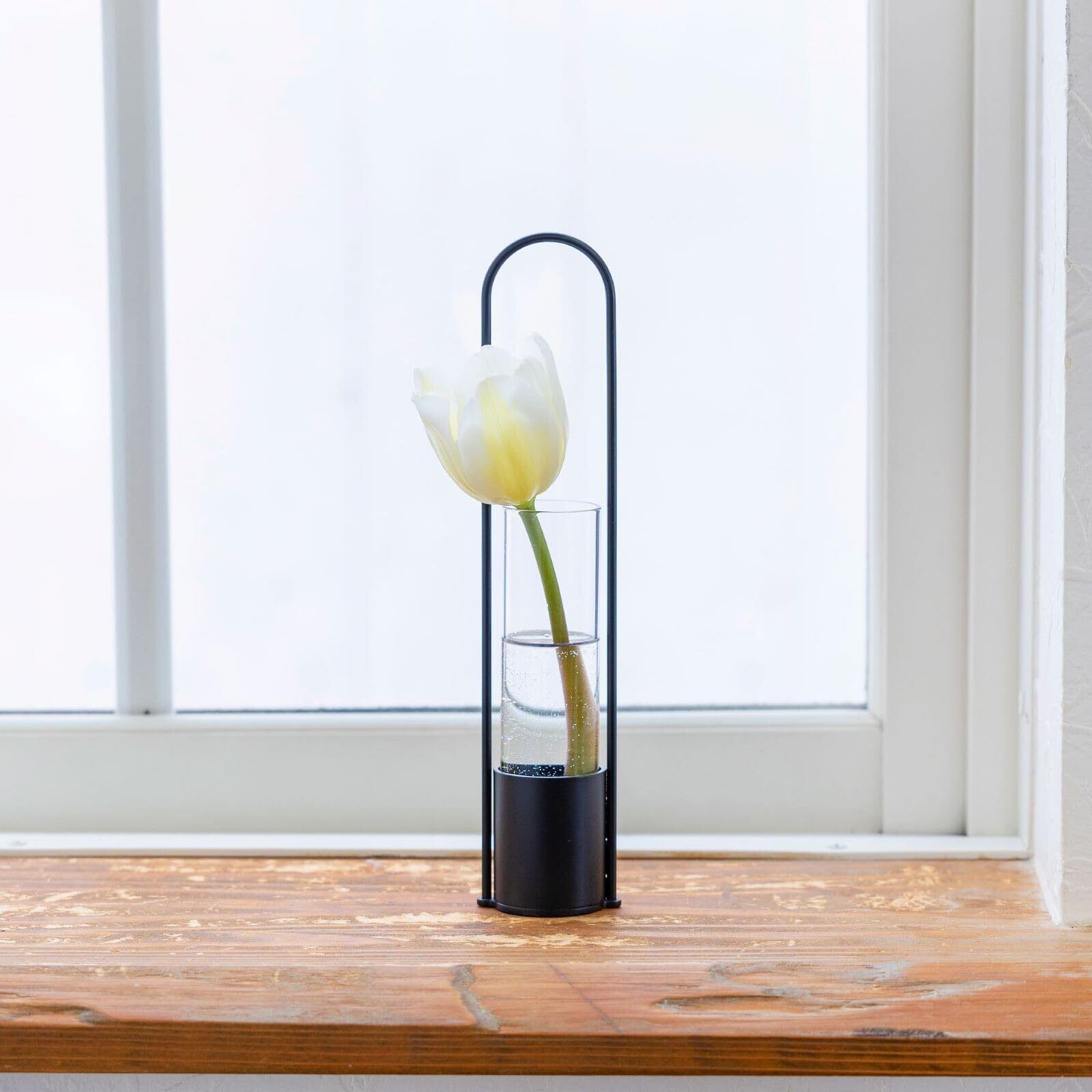 一輪挿すだけで美しいオブジェになるスチールパイプ花器。
