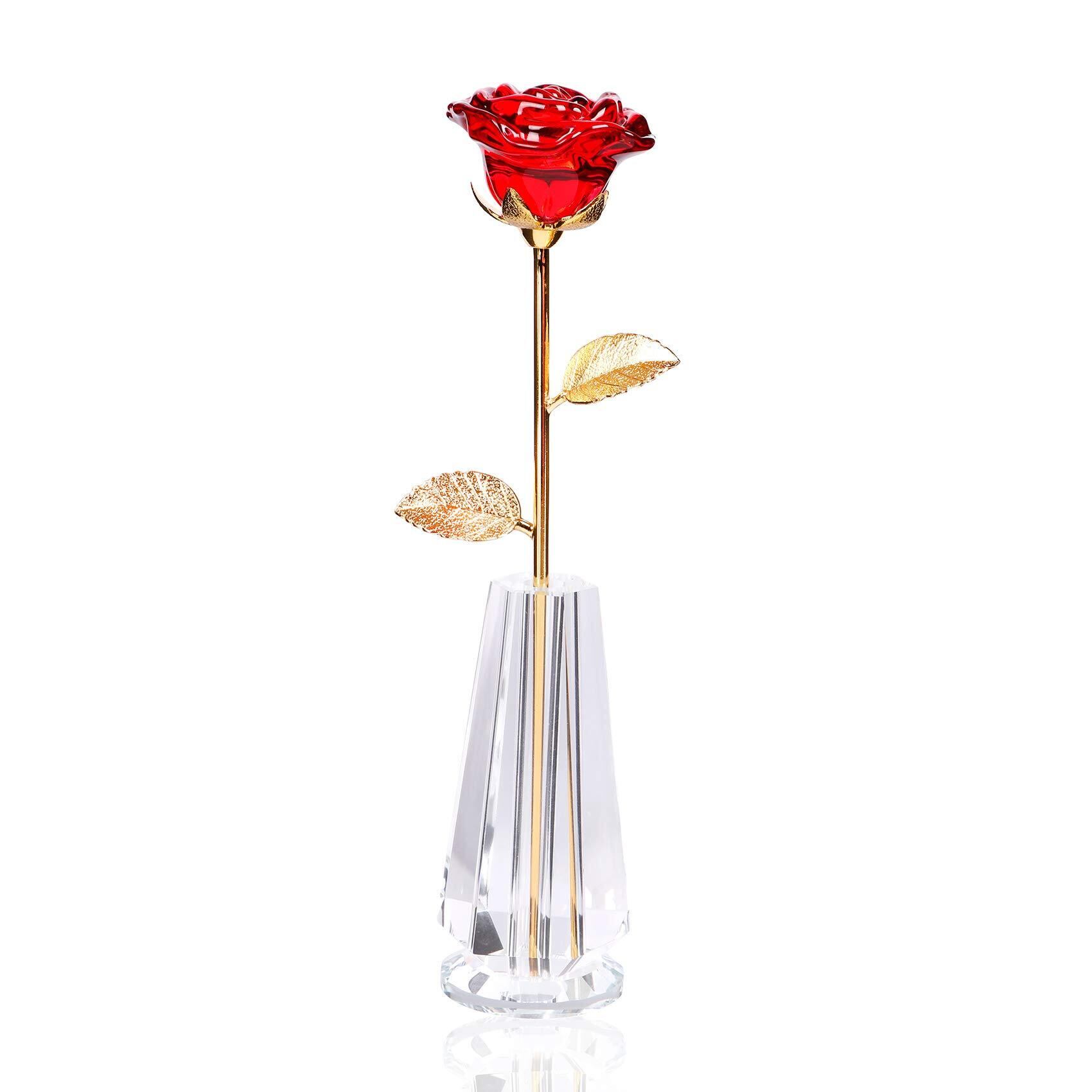 Kertari 結婚記念日 誕生日 プレゼント 花 妻 彼女 女性 人気 バラの花【正規品】 K9クリスタル 造花 インテリア 枯れない花 & クリスタル花瓶 結婚祝い 退職 ギフト薔薇 (レッド)