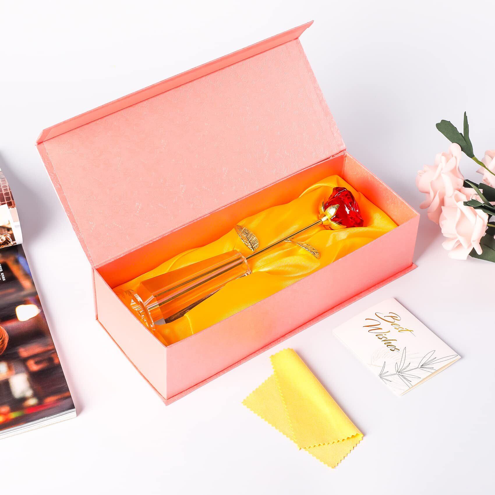 【ギフトラッピング済】パッケージに含まれるもの:一輪 バラ(花本体の長さ:23CM);クリスタル花瓶:(花瓶本体の長さ:11cm、総重量:388g);部品:お祝いのカードx 1、美しいギフトボックスx 1。ドレッサー、デスク、ダイニングテーブルの装飾として独立して配置できます