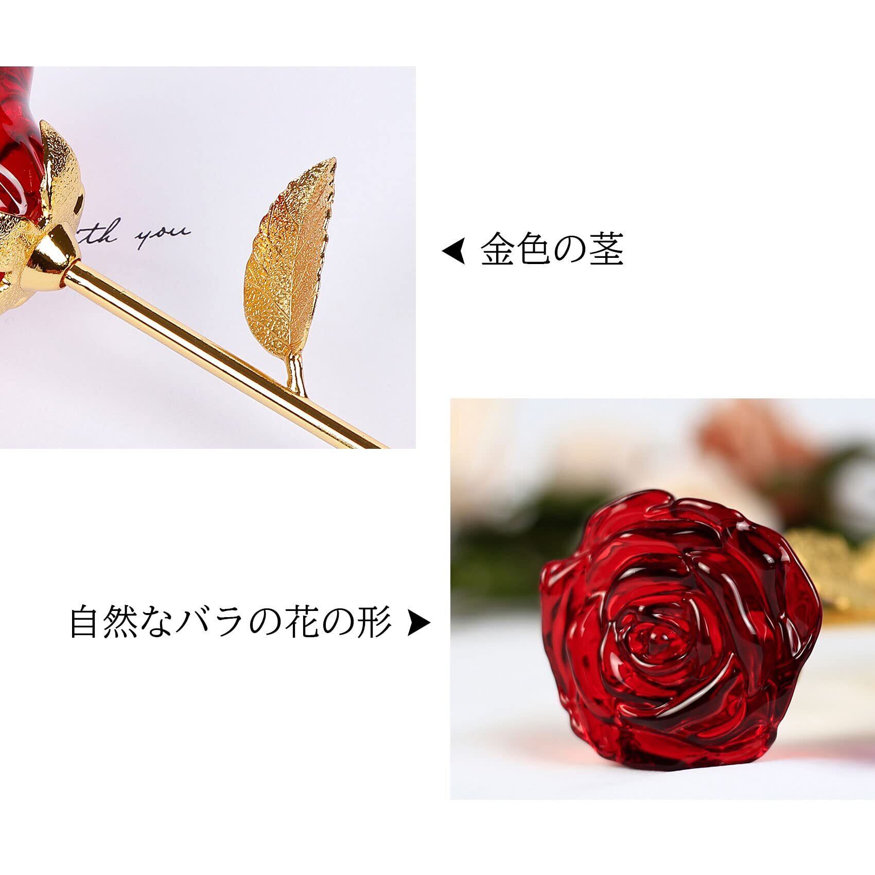 【枯れない花 プレゼント】レッドバラは真っ赤な色で、強くて情熱的な愛を象徴しています。 レッドバラは、花の言葉が愛への憧れと憧れを表します。K9クリスタル バラの花 はあでやかで美しいです。まるで本物のような品質で,葉との枝は鍍金製で、高級感と美し感じがあります。一生に枯れない花で、大切な方のプレゼントに最適