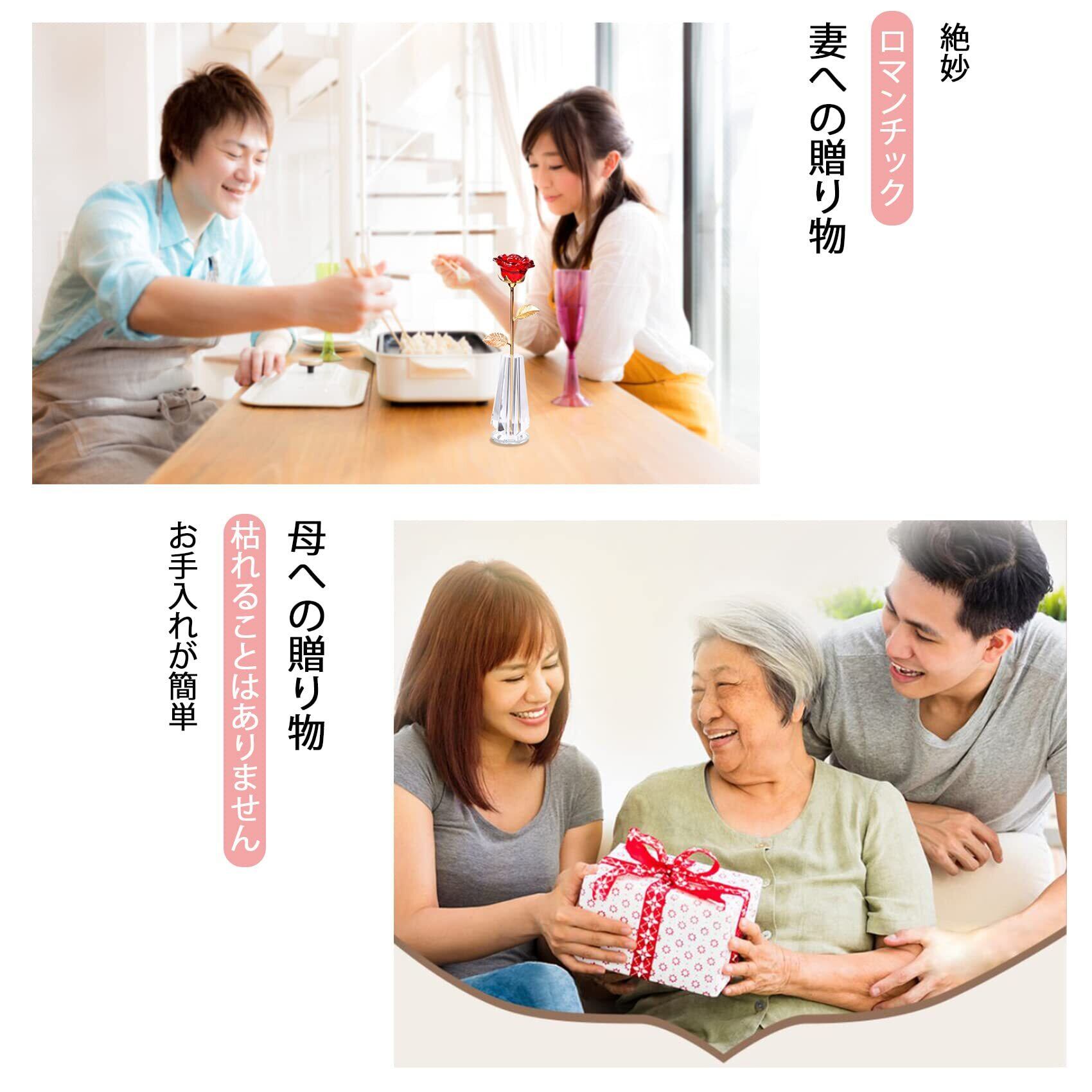 結婚記念日や誕生日、母の日、退職祝いなど、様々なシーンで大切な方への贈り物として最適です。また、クリスタル花瓶が付いているため、インテリアとしても華やかさを加え、リビングや寝室、オフィスのデコレーションにもお使いいただけます。