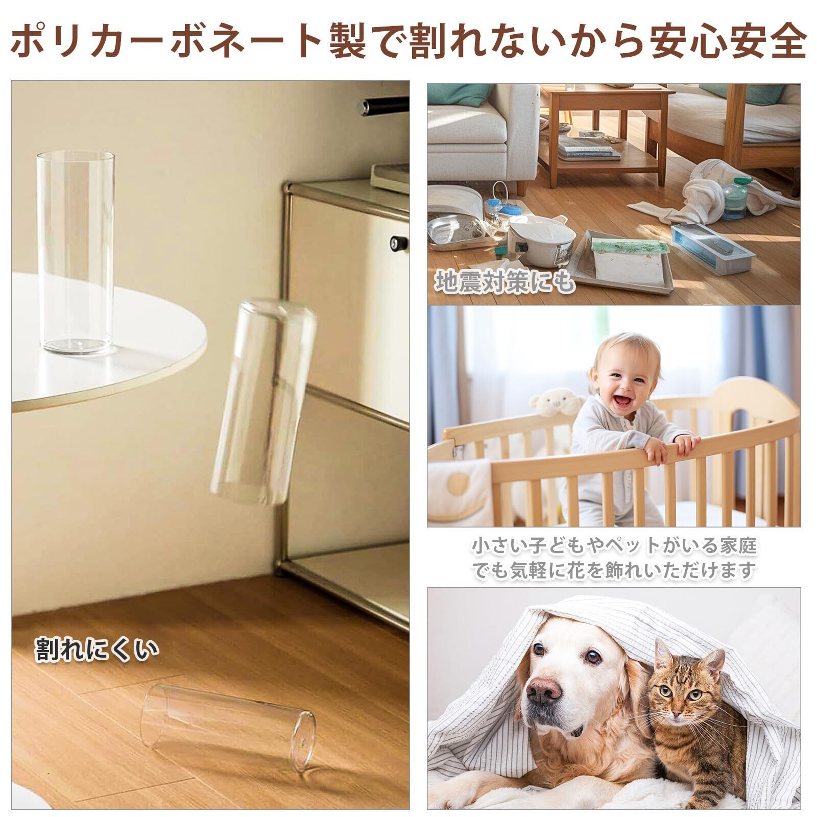 【 使う場所を選びません 】透明な花瓶で様々な環境でご使用いただけます。シンプルな円柱形でどんなインテリアにもマッチし、景観を損なうことがありません。ご家庭だけではなく店舗や商業施設などでもお使いいただけます。