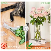 【丈夫で軽い】ガラスの花瓶より軽量で扱いやすい。くぼみがないため水を取り換える際にも取り扱いが楽です。透明なので花瓶の中身が見えて、水や茎の変化がわかりやすいです。