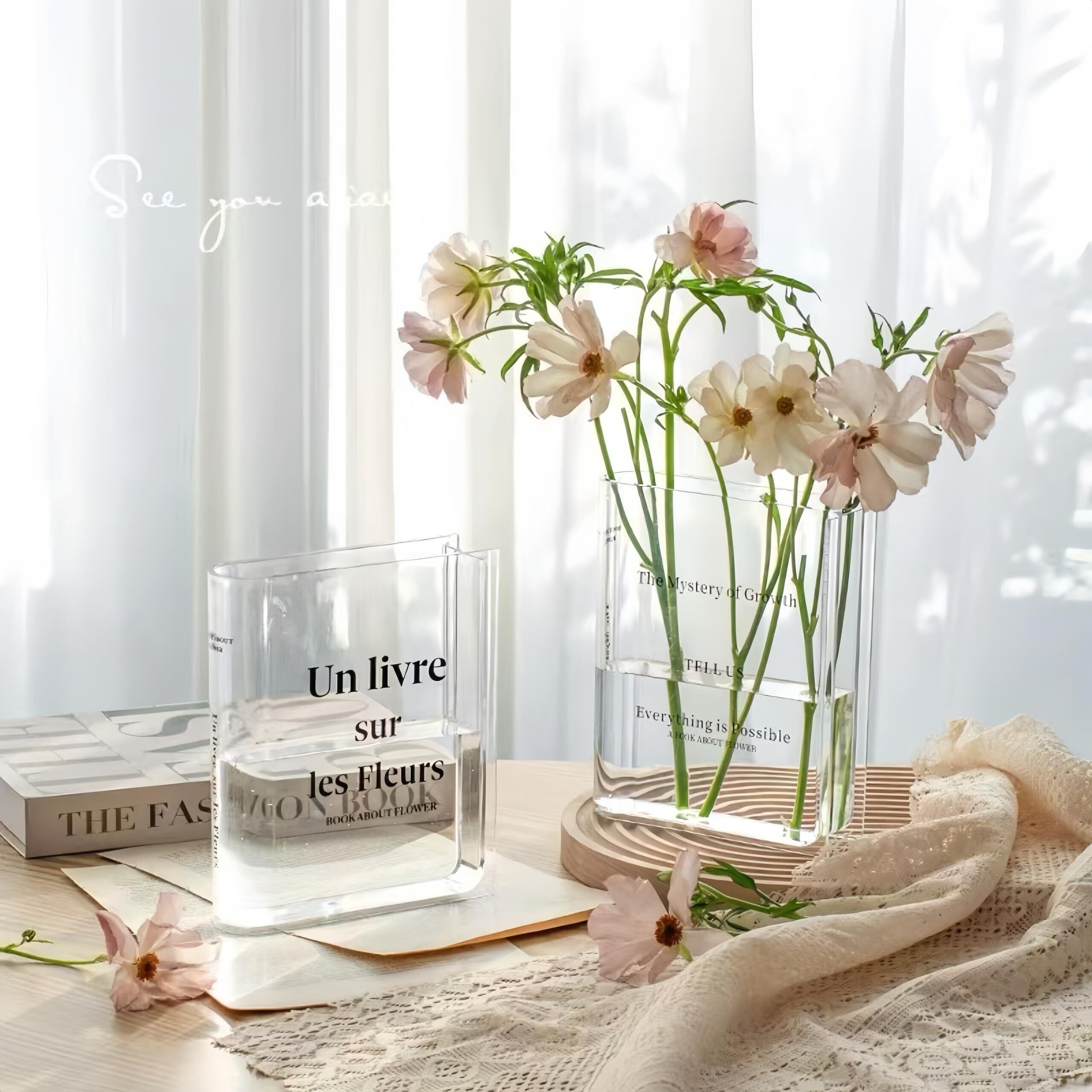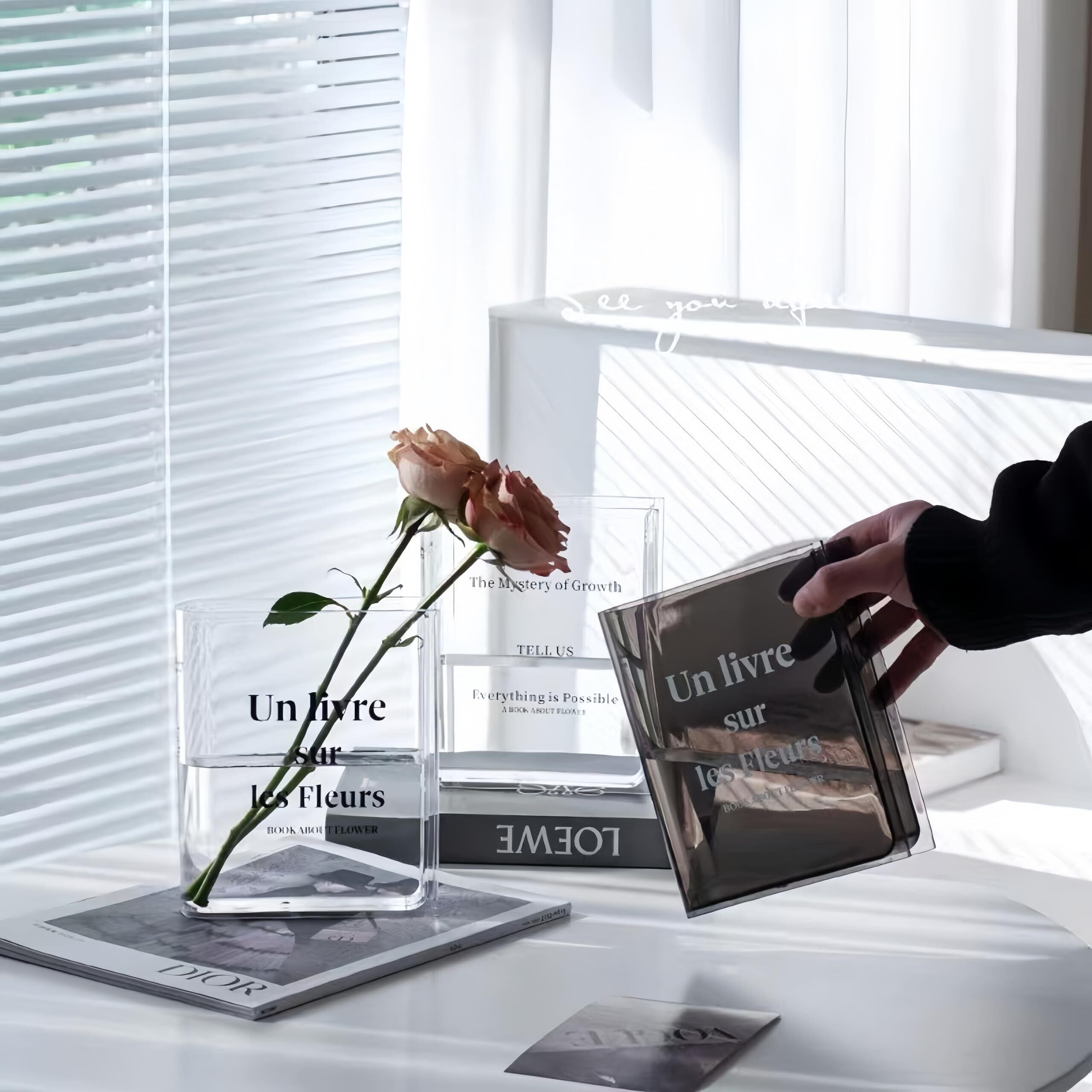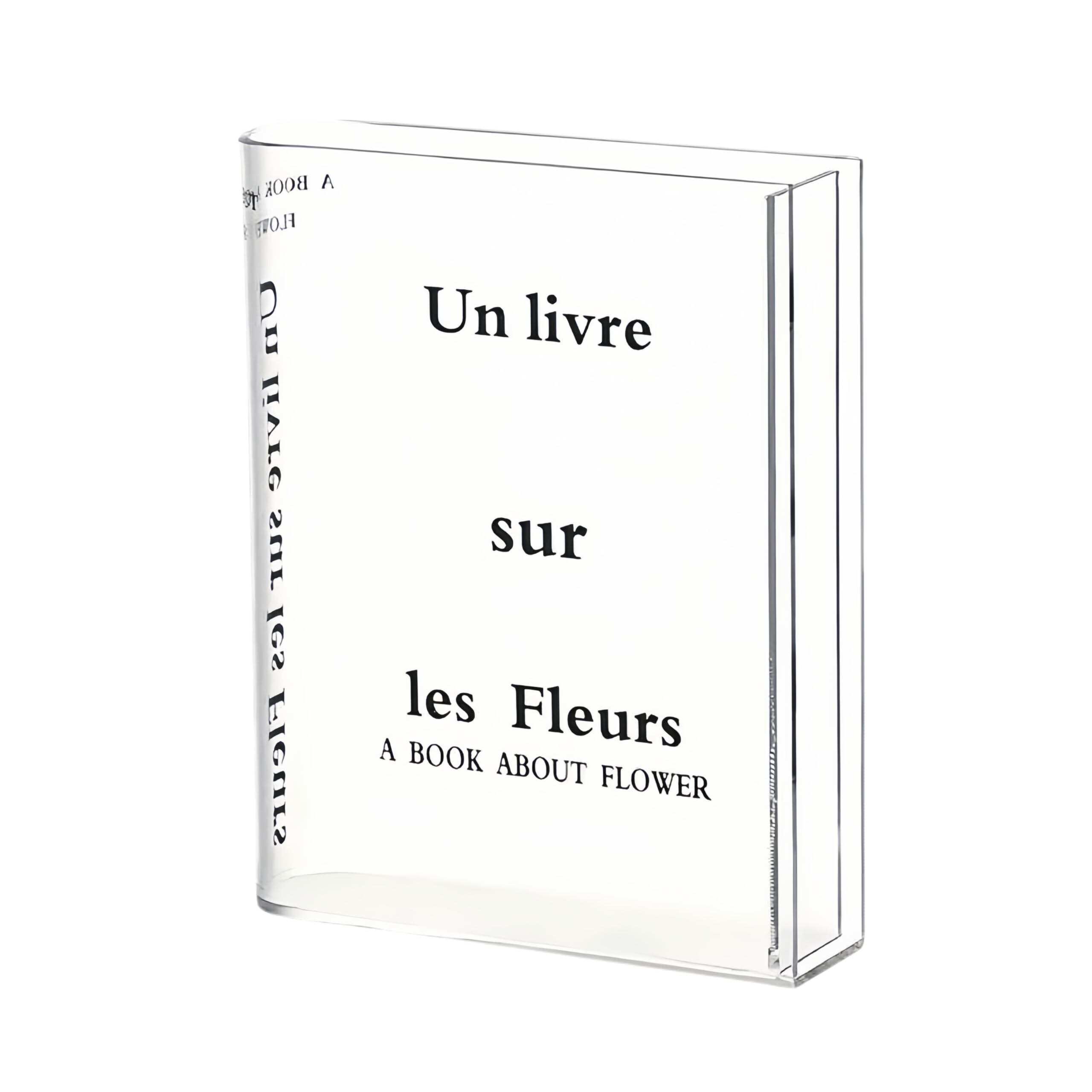 DFUASIBC [本型デザイン] アクリル製 透明花瓶 高さ18cm|軽量 割れにくい 省スペース| 生け花/テーブル飾り/ギフト対応 書籍モチーフ 卓上インテリア 水耕栽培の花 ドライフラワー挿入 (透過性)