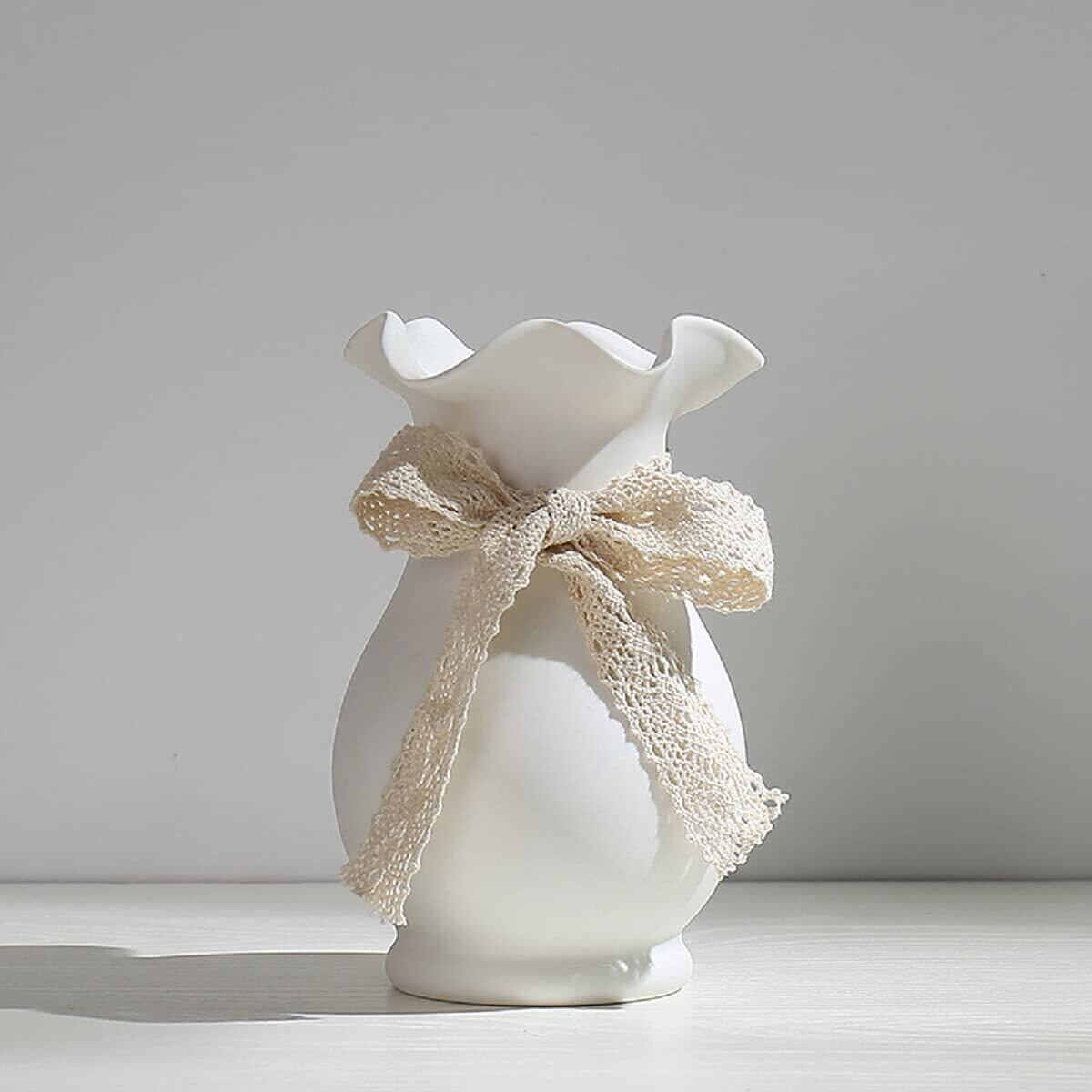 純白の陶器の花瓶、クリエイティブなモダンデザイン、緑や造花によく似合う。 花瓶を単独で飾るだけです。コーヒーテーブル、ディナーテーブル、本棚、キッチン、リビングルーム、オフィスによく似合う