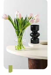 ベーシック形状でシーンやインテリアを選ばないガラスベース。切花を飾るのに使い勝手の良いサイズ感のため、季節問わずお使いいただけます。