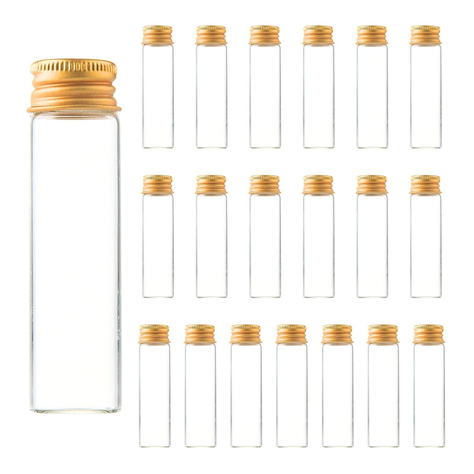 EMIRAIZE 小瓶 ガラス 蓋付き ミニボトル 透明 保存容器 密閉 液体 小物入れ 20個セット (ゴールド, 20ml)