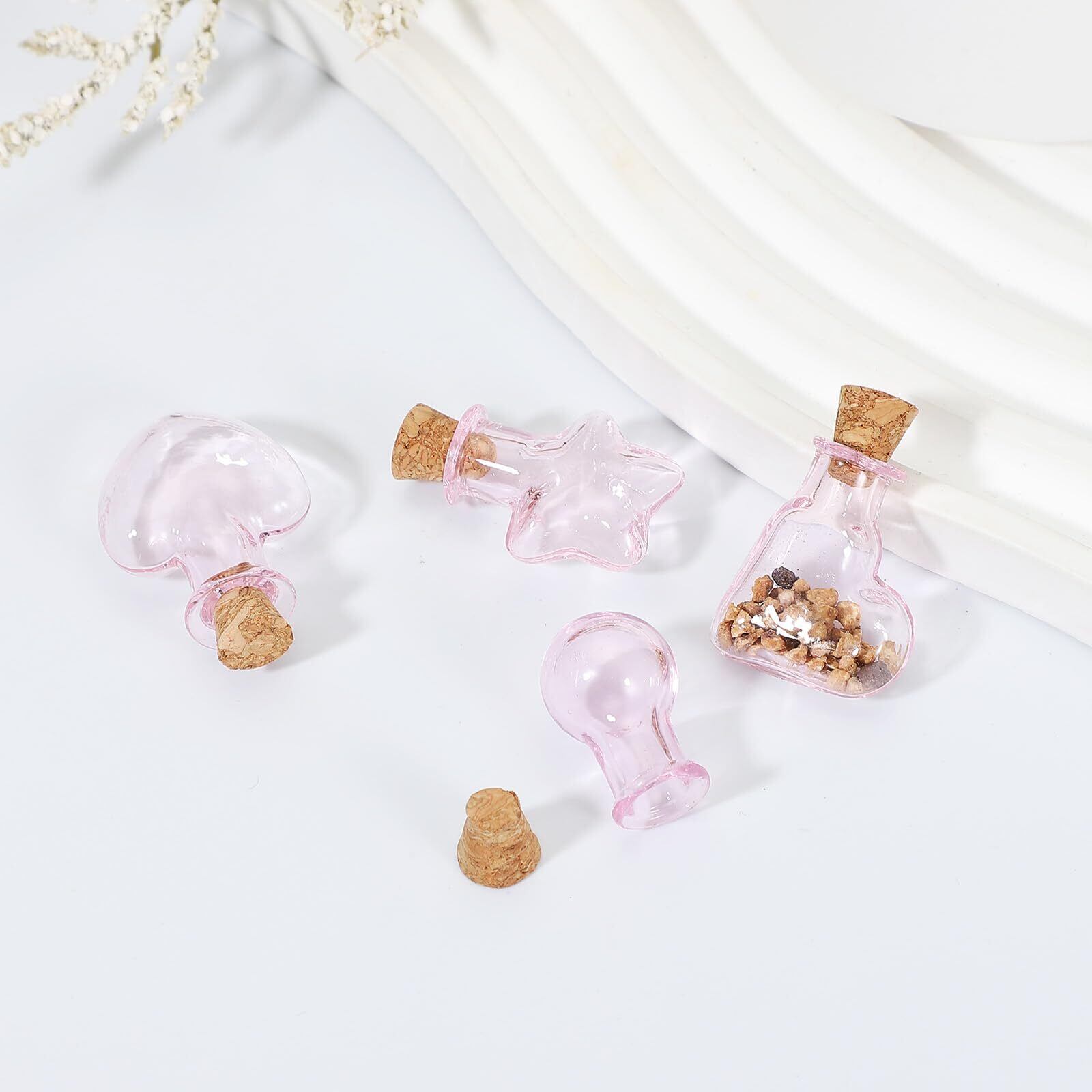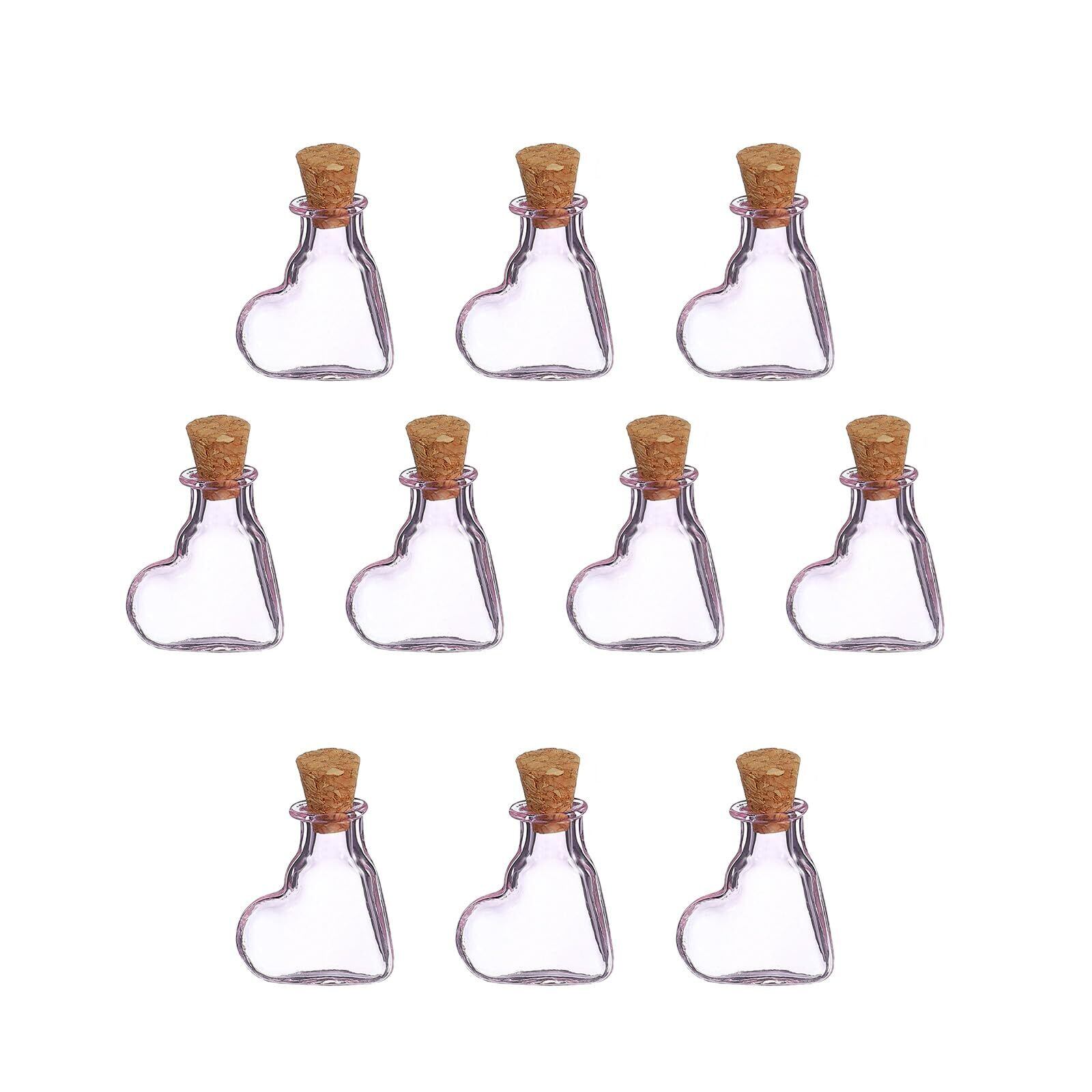 uxcell 10個 ミニガラスボトルペンダント 0.01oz/0.5ml 傾斜したハート形 小さなガラス瓶 コルクストッパー付き DIYクラフトパーティーウェディングデコレーション用 願い ボトル ピンク